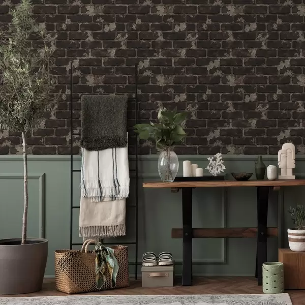 Behang Donkere oude bakstenen muur met versleten plekken Nr. a01030