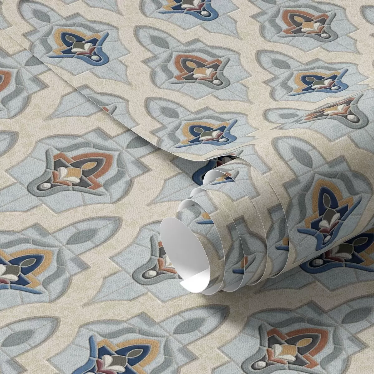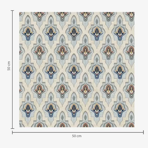Behang Oosters patroon van kleine tegels in een blauw-zandkleurig palet Nr. a01044