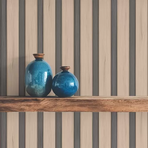 Behang Beige houten planken met donkere verticale strepen Nr. a01054v2