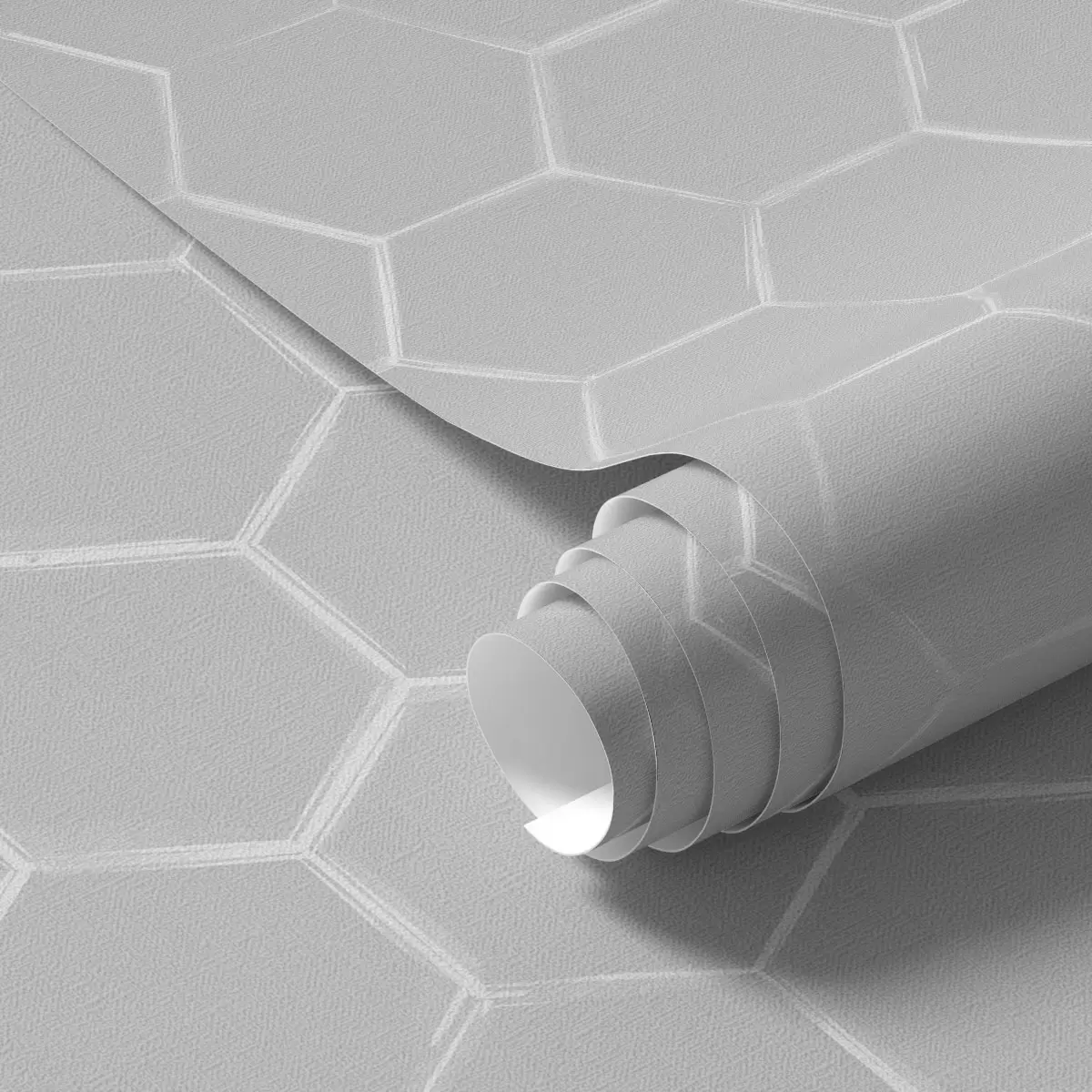Behang Lichtgrijze driedimensionale zeshoeken met zachte schaduwen Nr. a01059v1