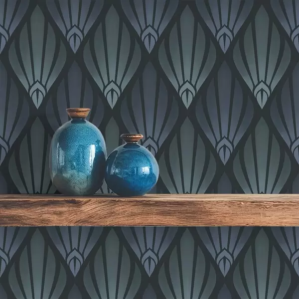 Behang Koel blauwgrijs Art Deco met waaiervormige vormen Nr. a01064v3