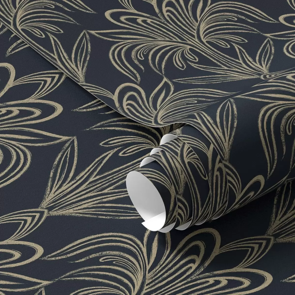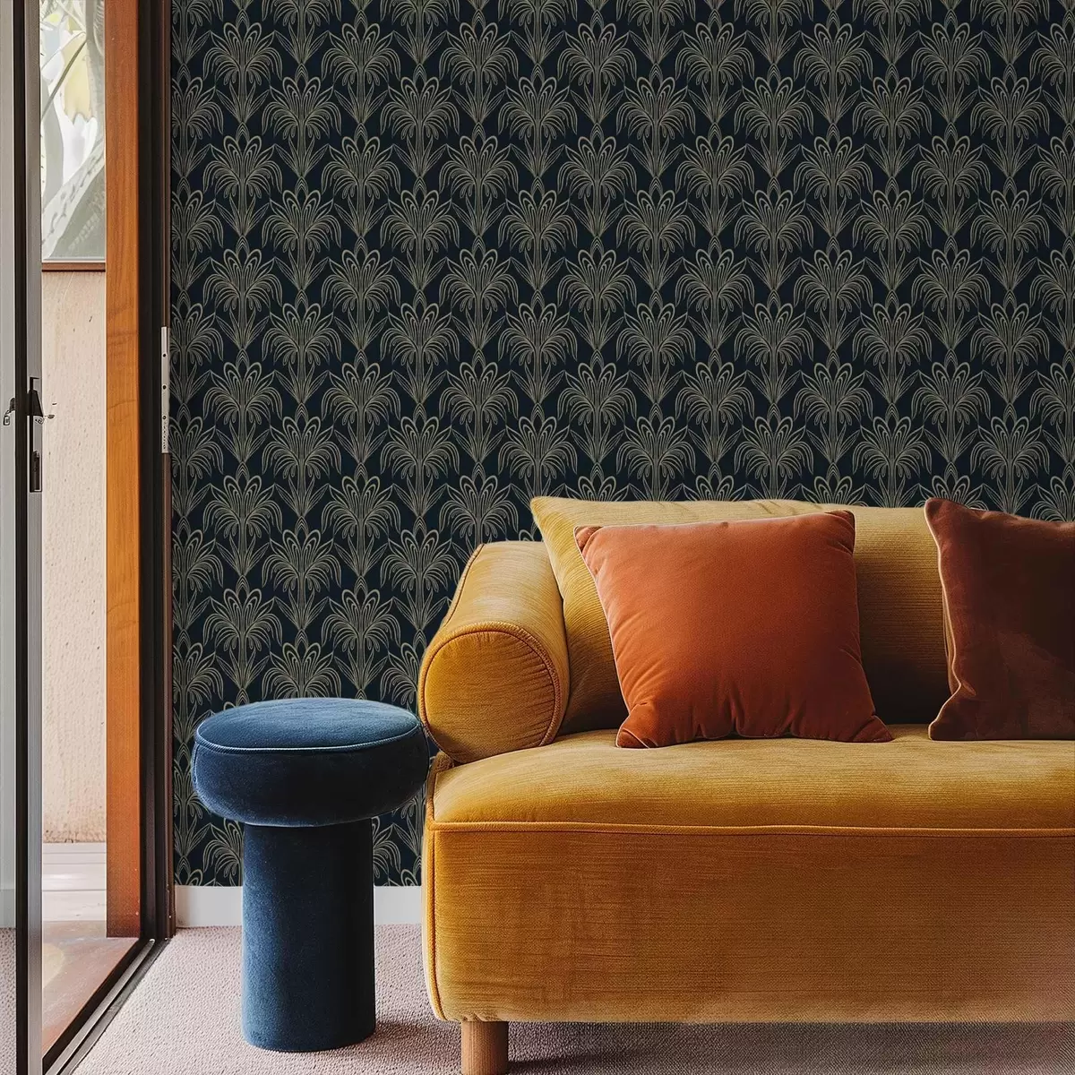 Behang Donker Art Deco-ornament met gestileerde planten Nr. a01065