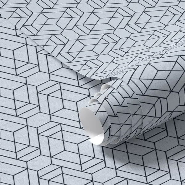 Behang Lichtblauw geometrisch kubuspatroon Nr. a01066