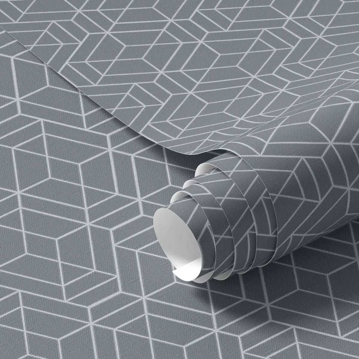 Behang Grijze achtergrond met witte driedimensionale kubussen in een raster Nr. a01067v2