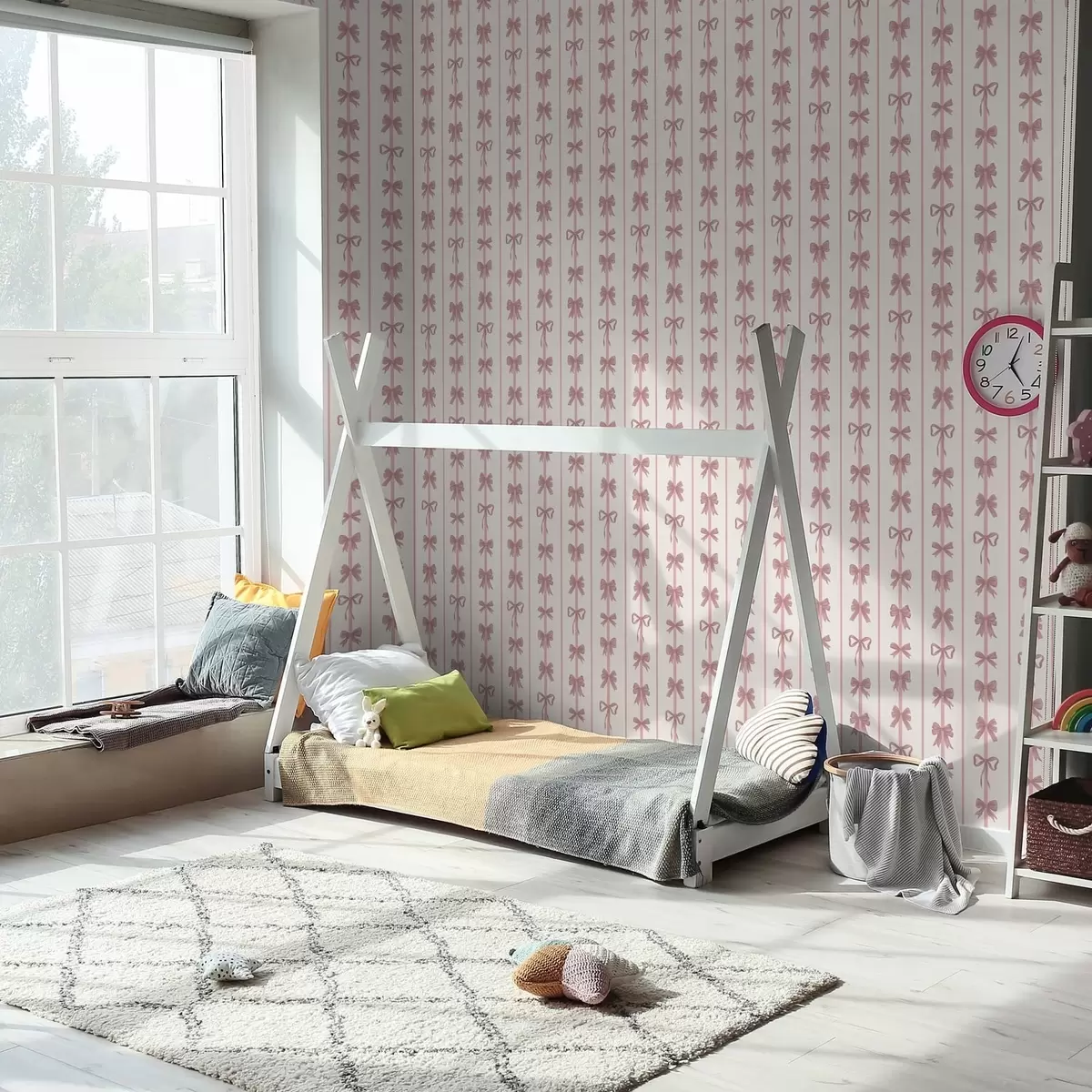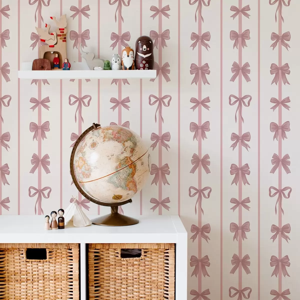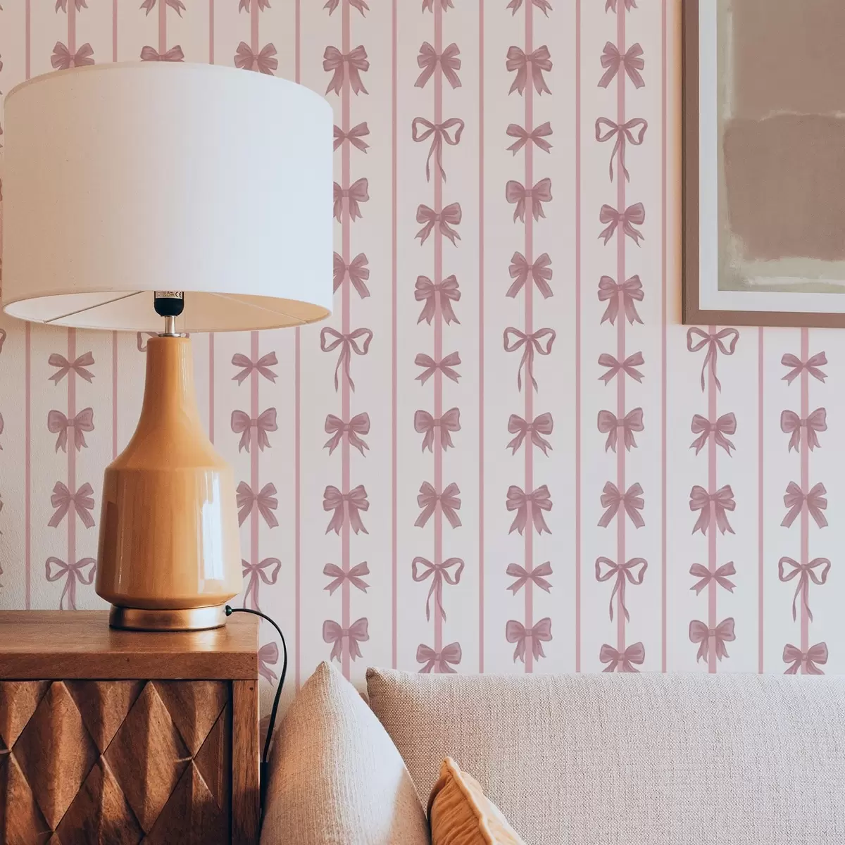 Behang Roze strikken in verticale strepen op een lichte achtergrond Nr. a01075