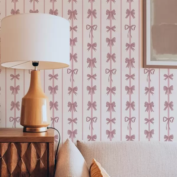 Behang Roze strikken in verticale strepen op een lichte achtergrond Nr. a01075