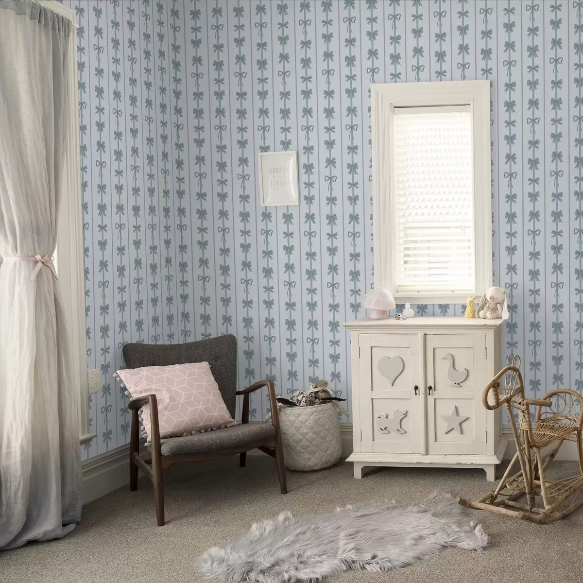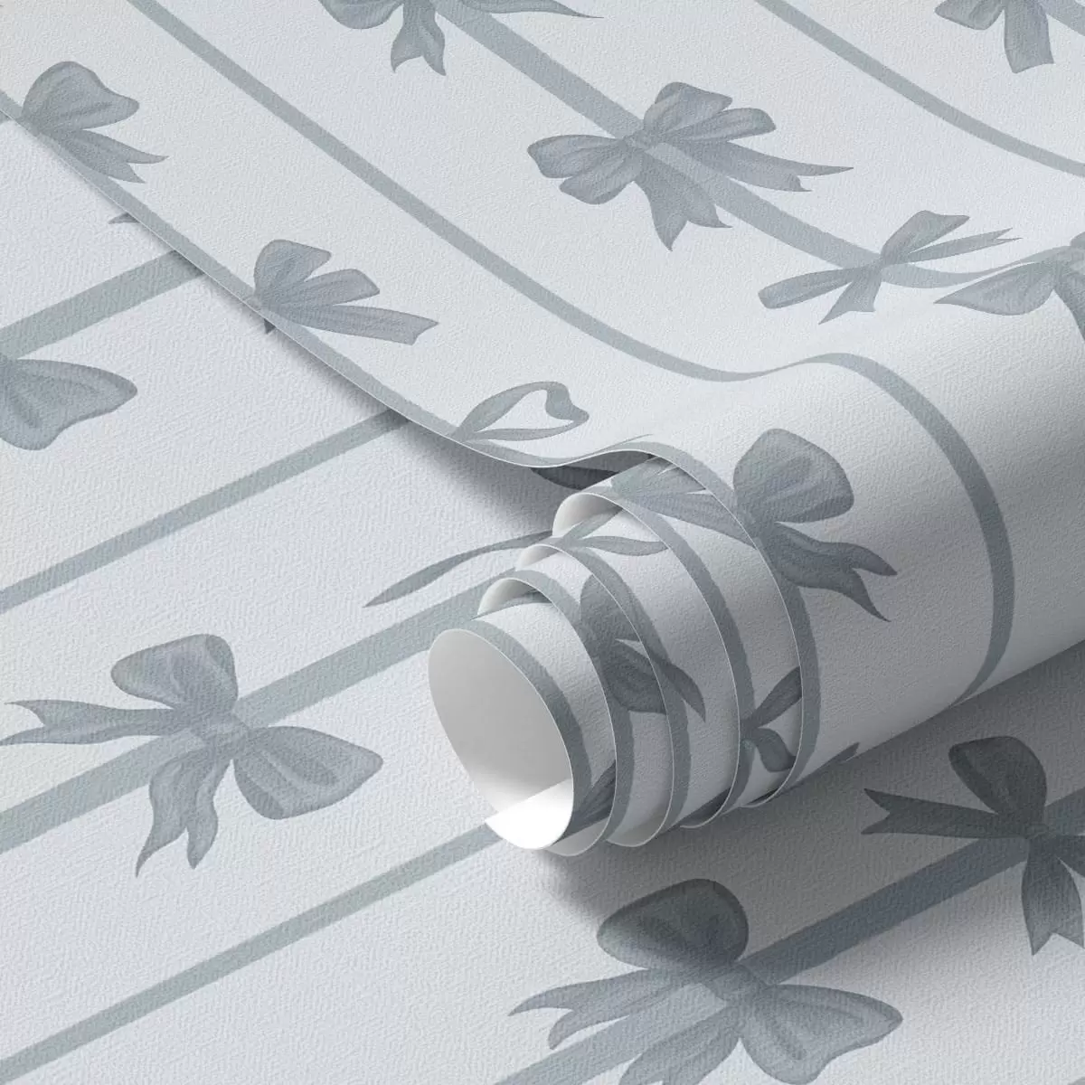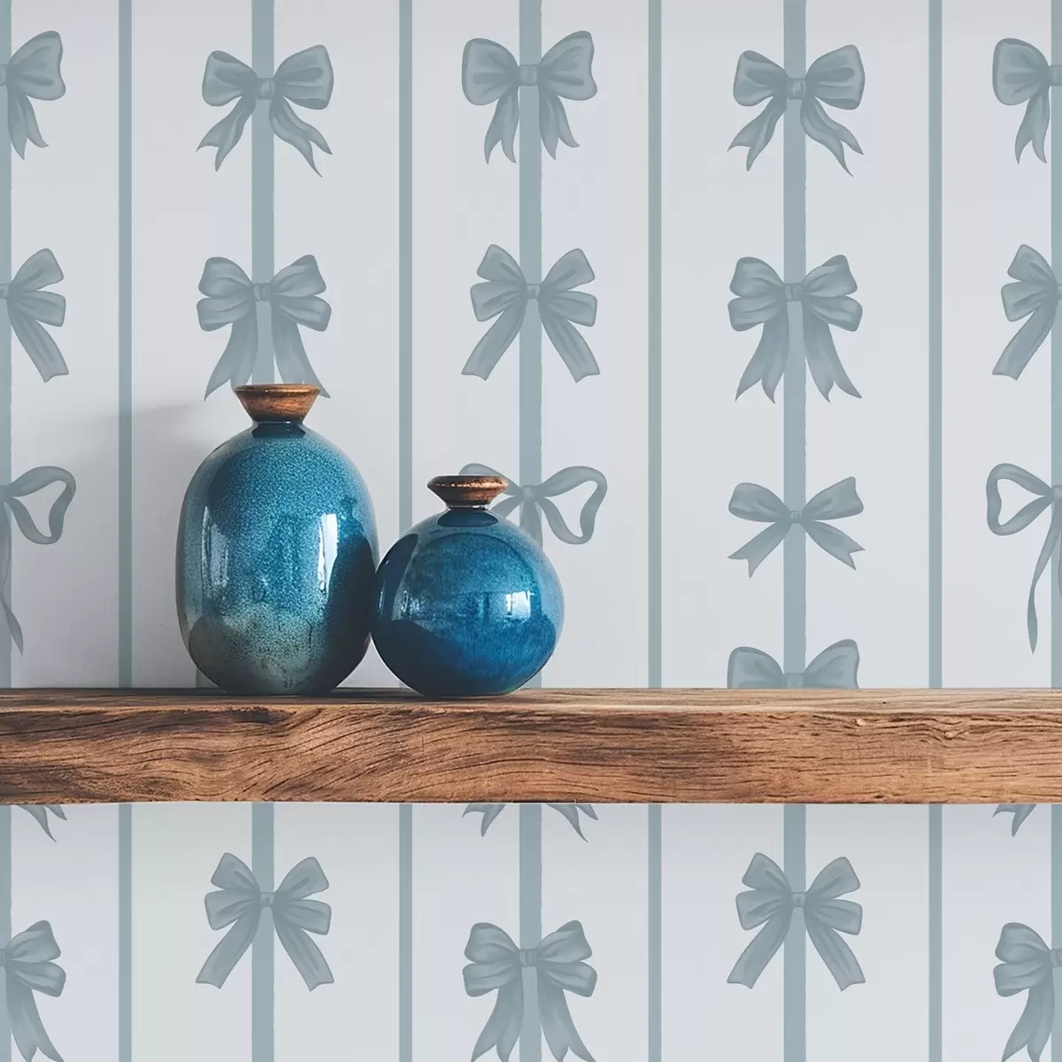Behang Blauwe strikken in strepen op een lichte achtergrond Nr. a01075v2