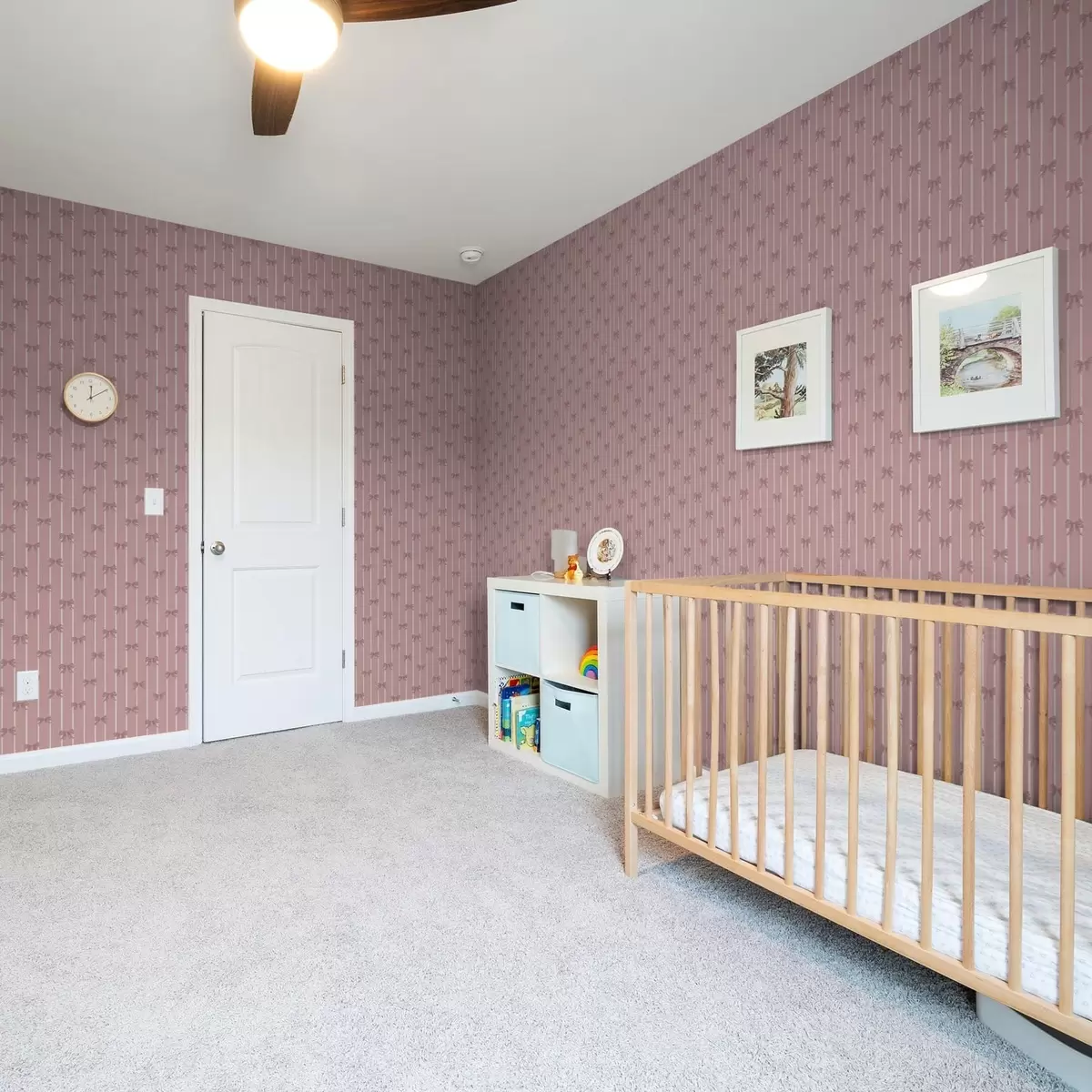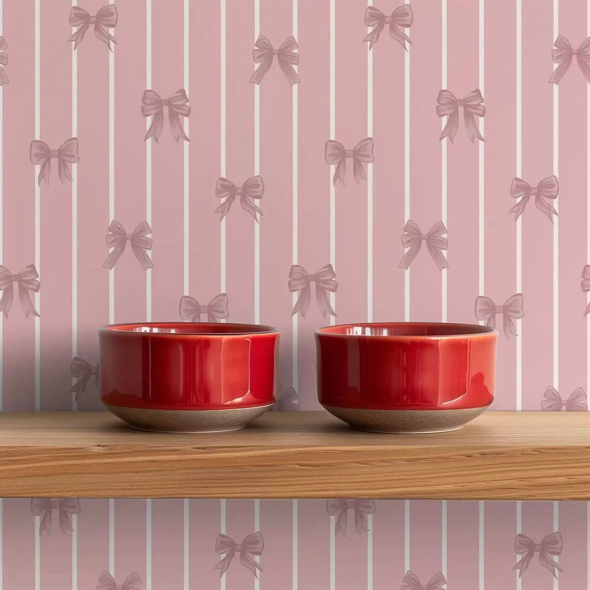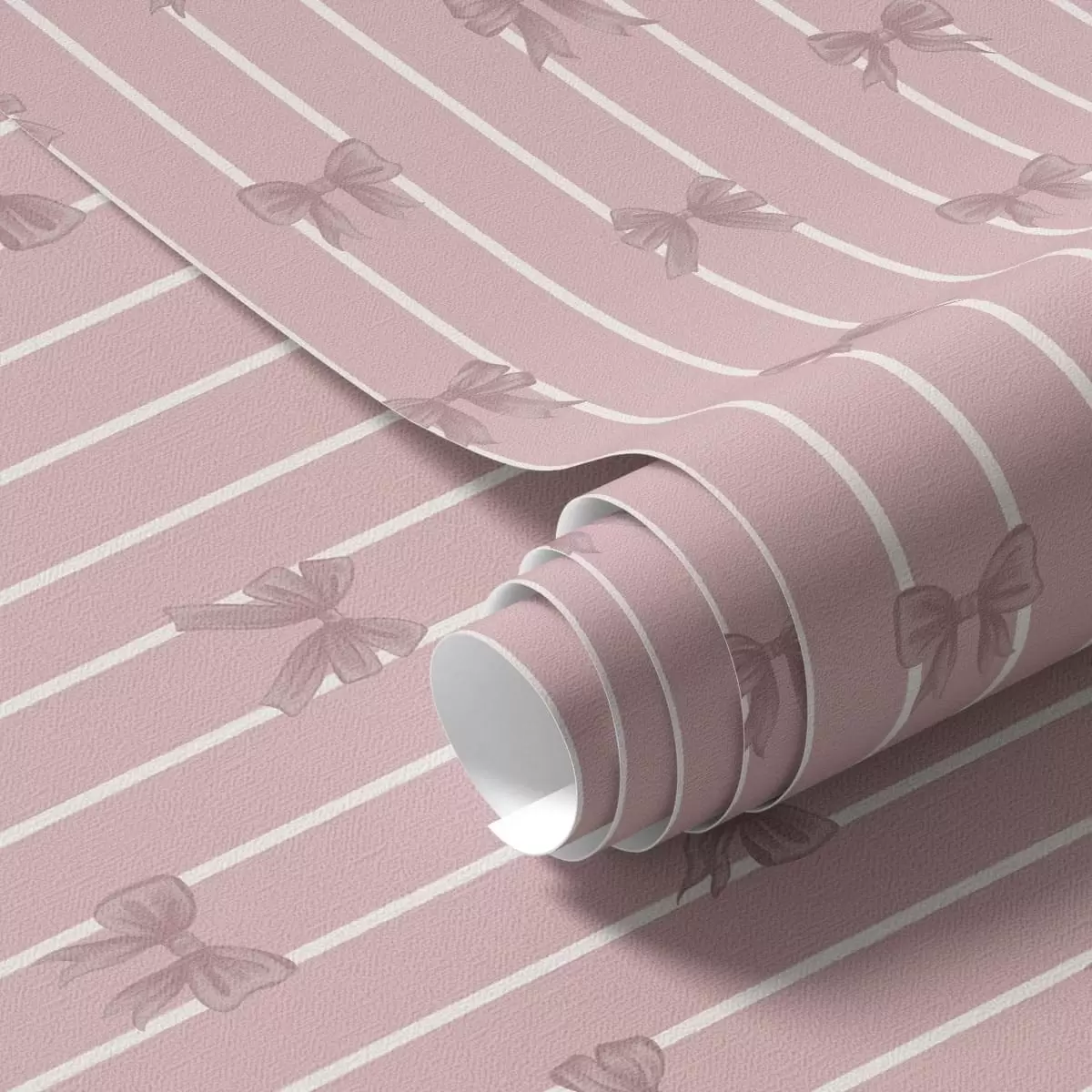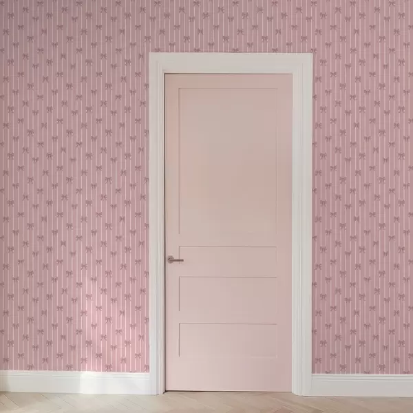 Behang Kleine roze strikjes op een roze gestreepte achtergrond Nr. a01076v1