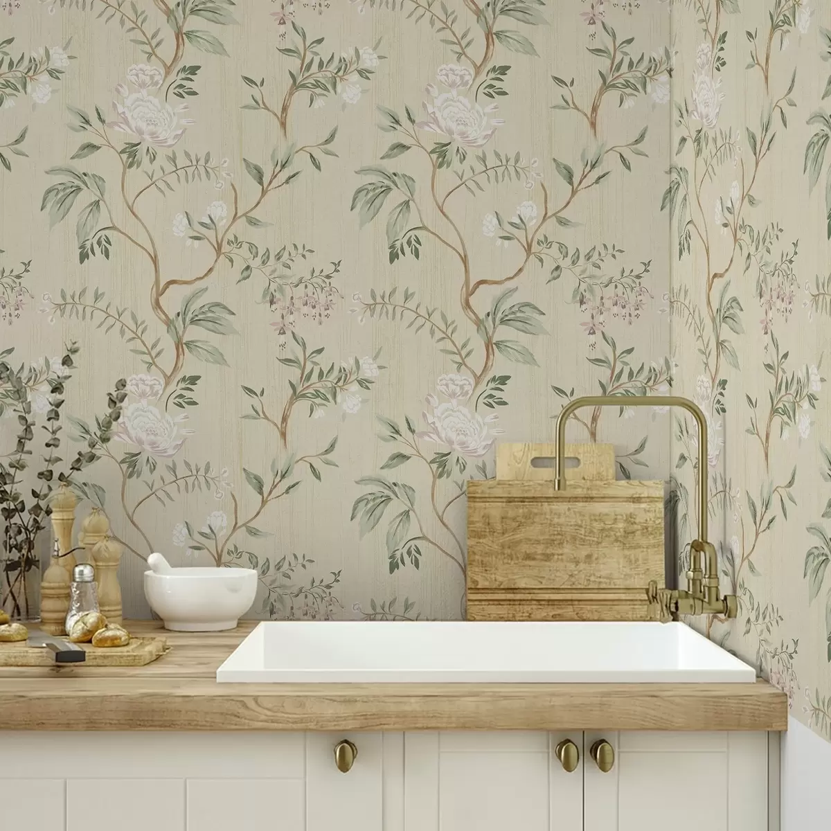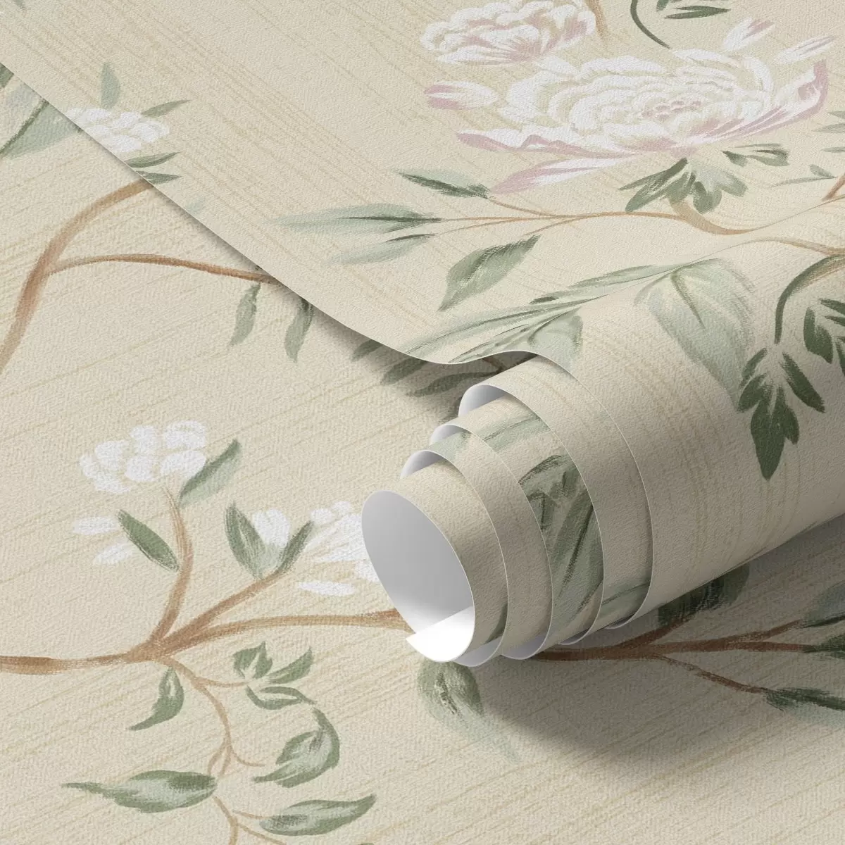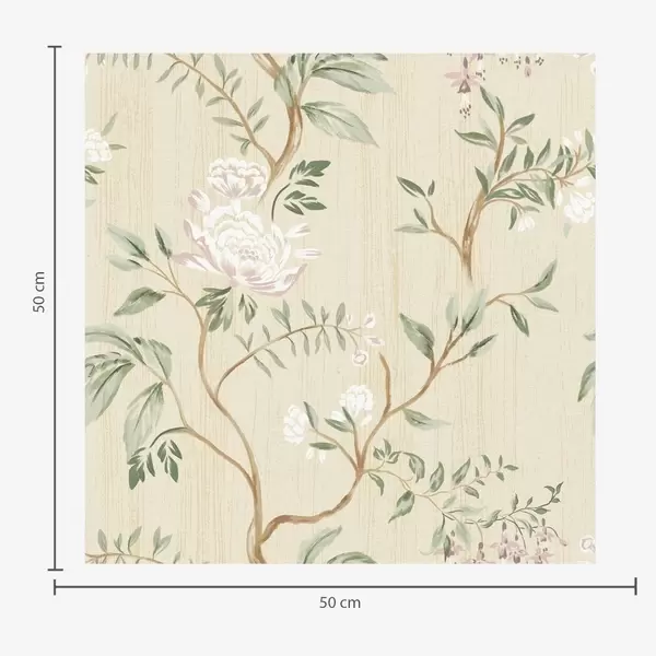 Behang Delicate takken met bloemen op een warme crèmekleurige achtergrond Nr. a01084