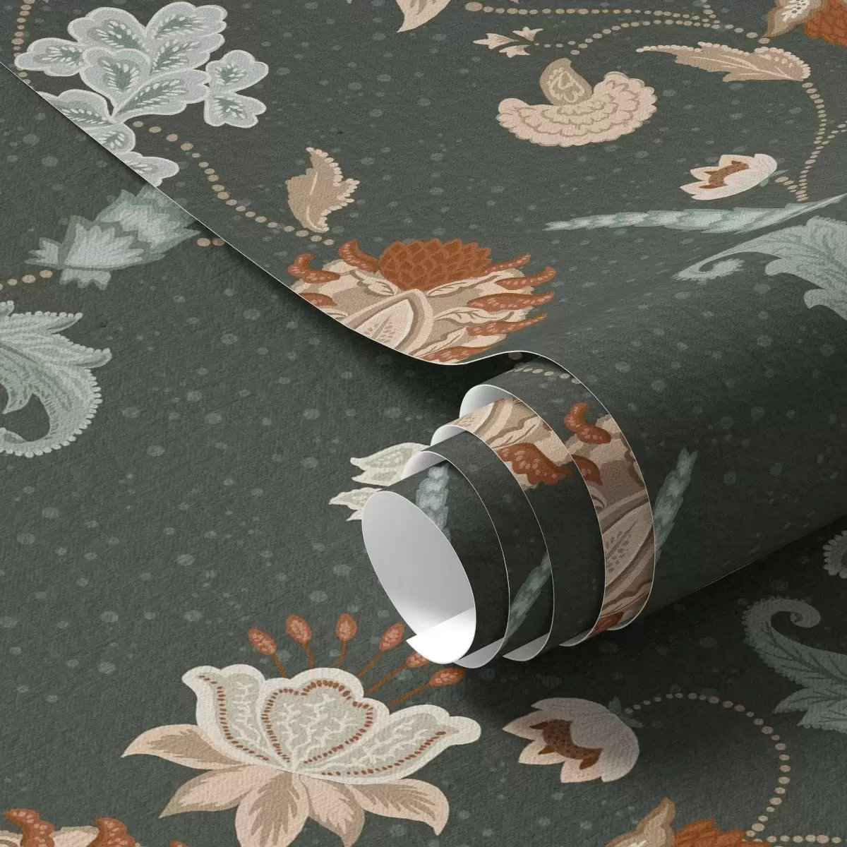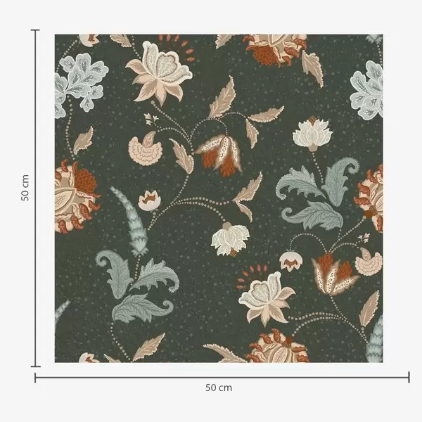 Behang Donkergroene achtergrond met decoratieve bloemen en bladeren Nr. a01086