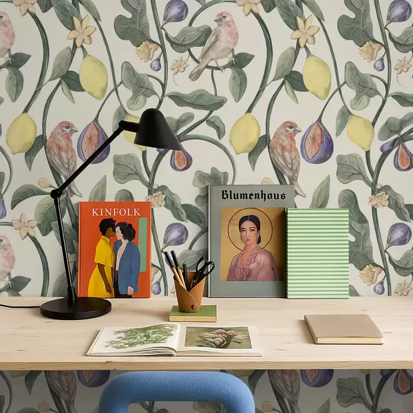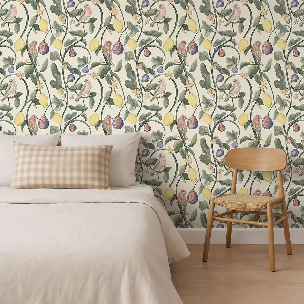 Behang Vogels tussen bladeren en vruchten Nr. a01107