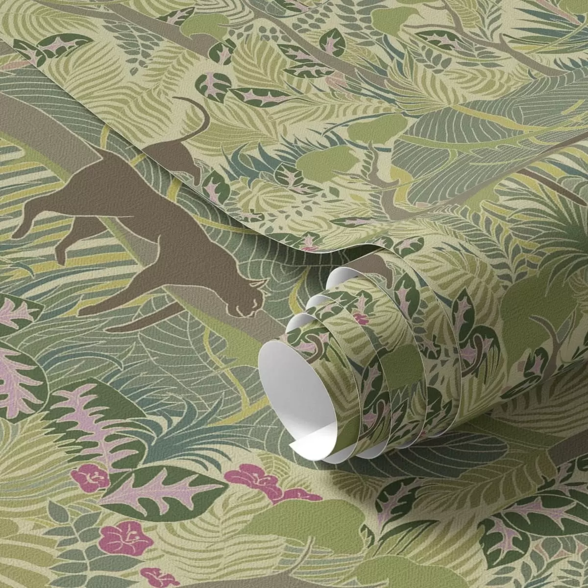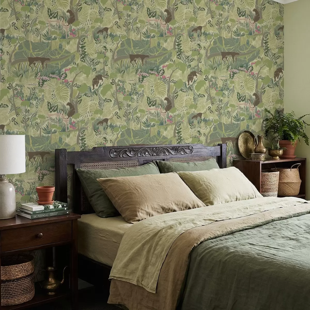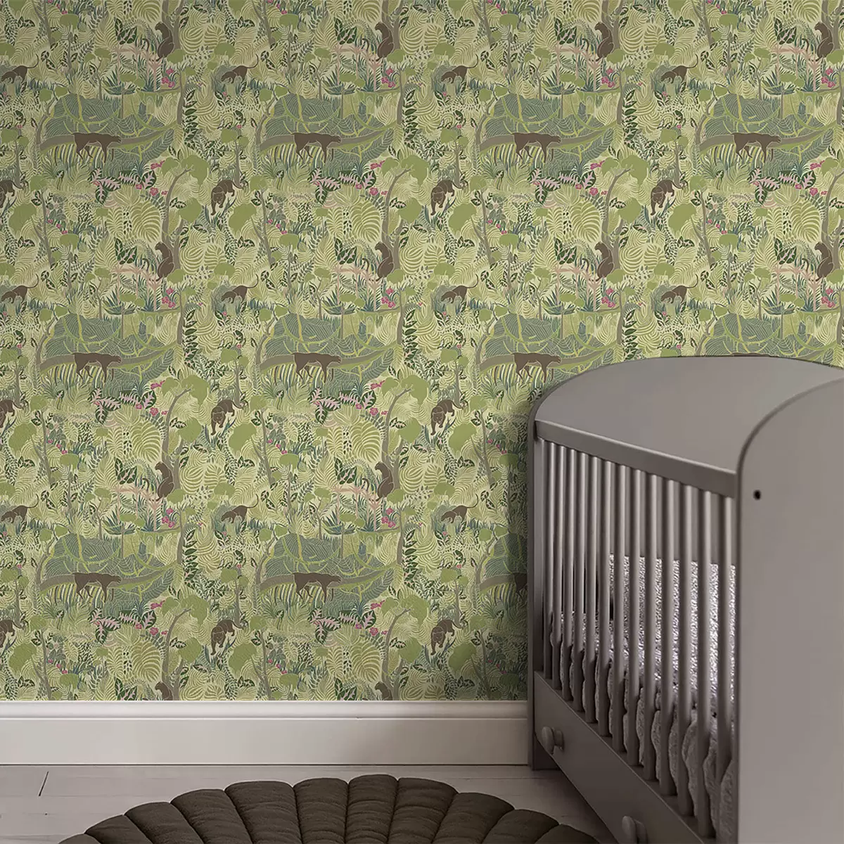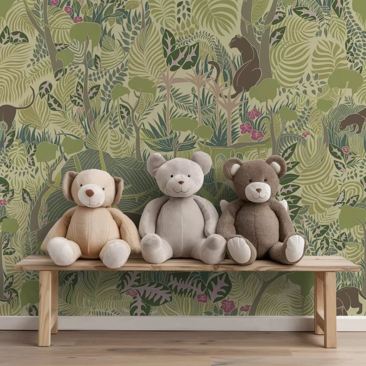Behang Boslandschap met dieren en dicht gebladerte Nr. a01108