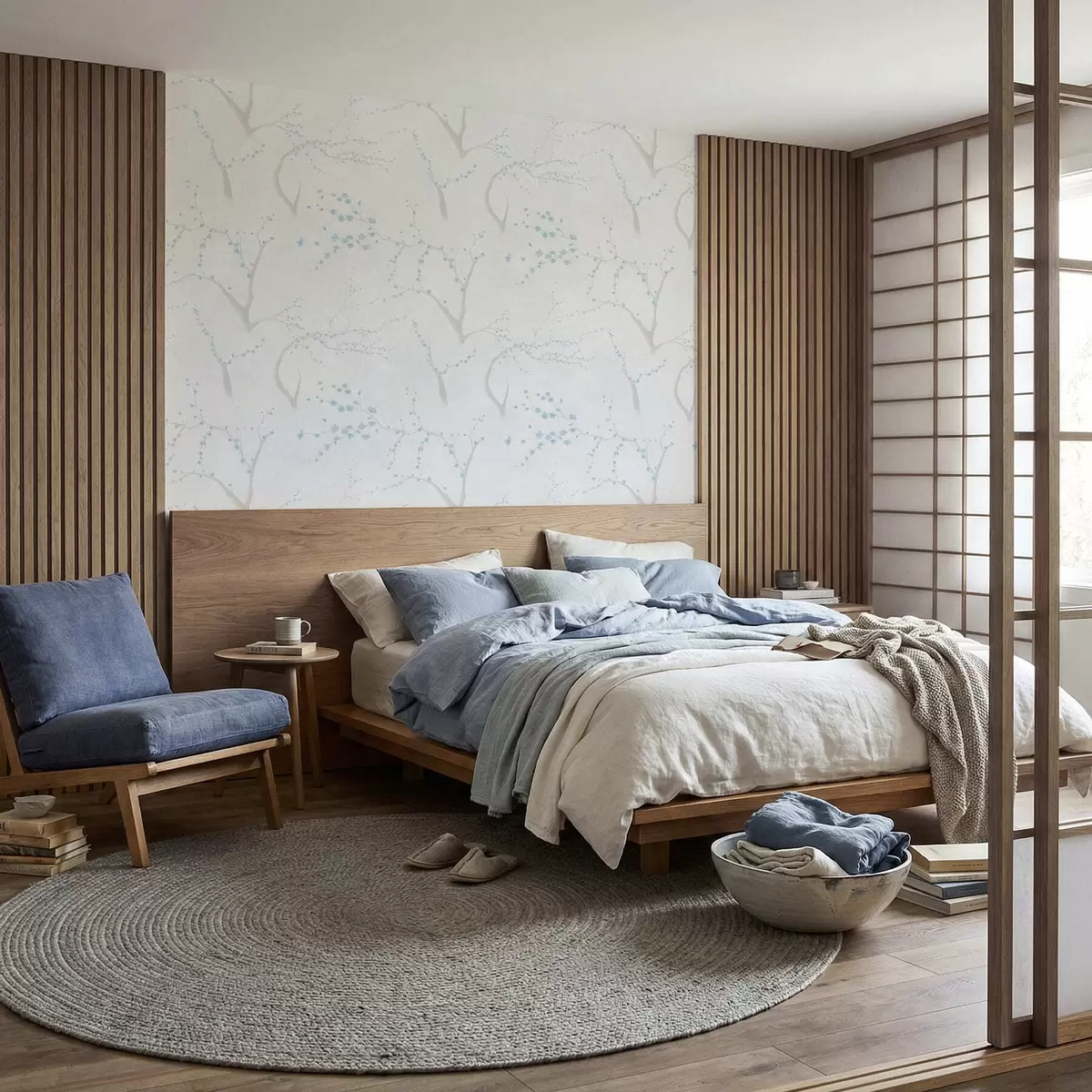 Behang Lichte takken met blauwe bloesems Nr. a01111