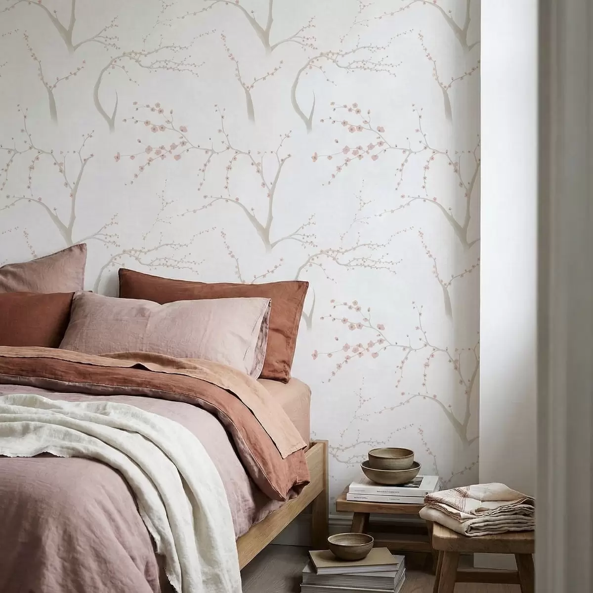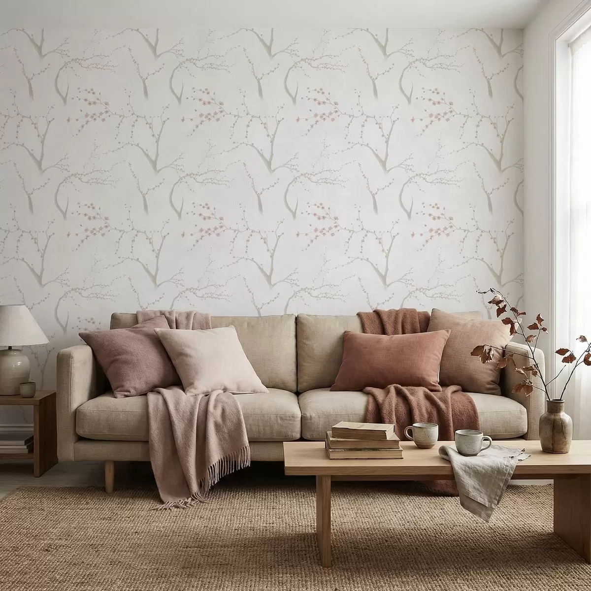 Behang Lichte takken met roze bloesems Nr. a01111v1
