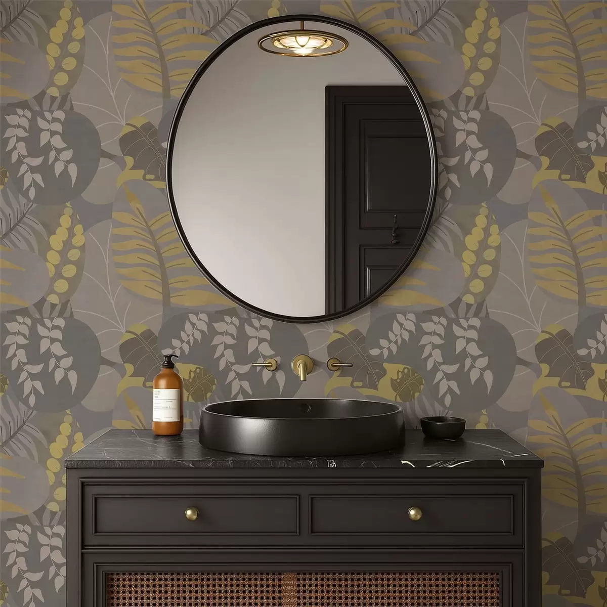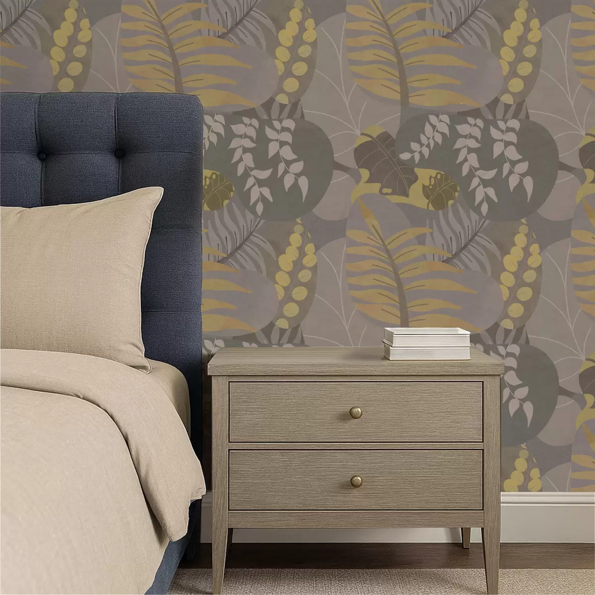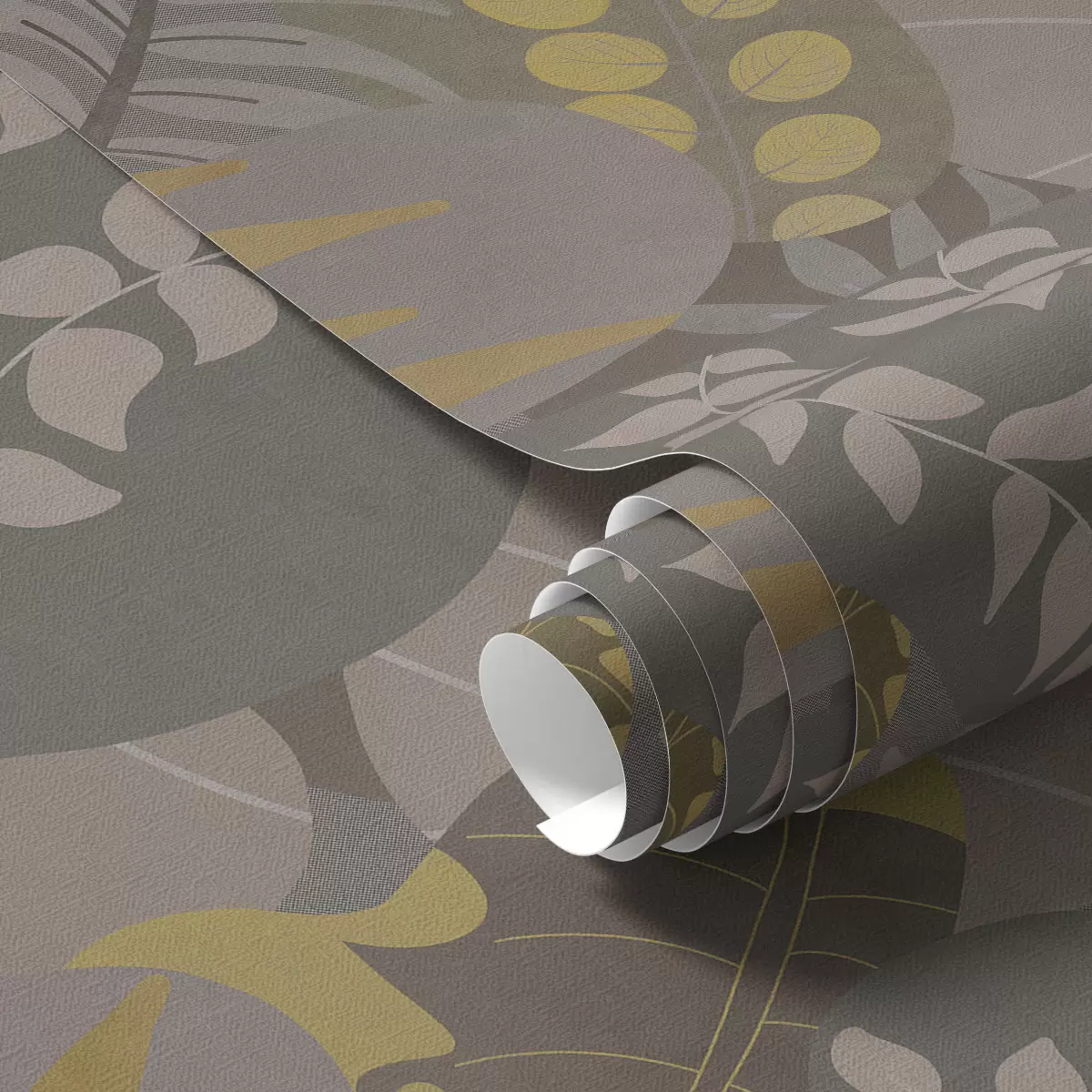 Behang Abstracte bladeren in grijze en gele tinten Nr. a01112