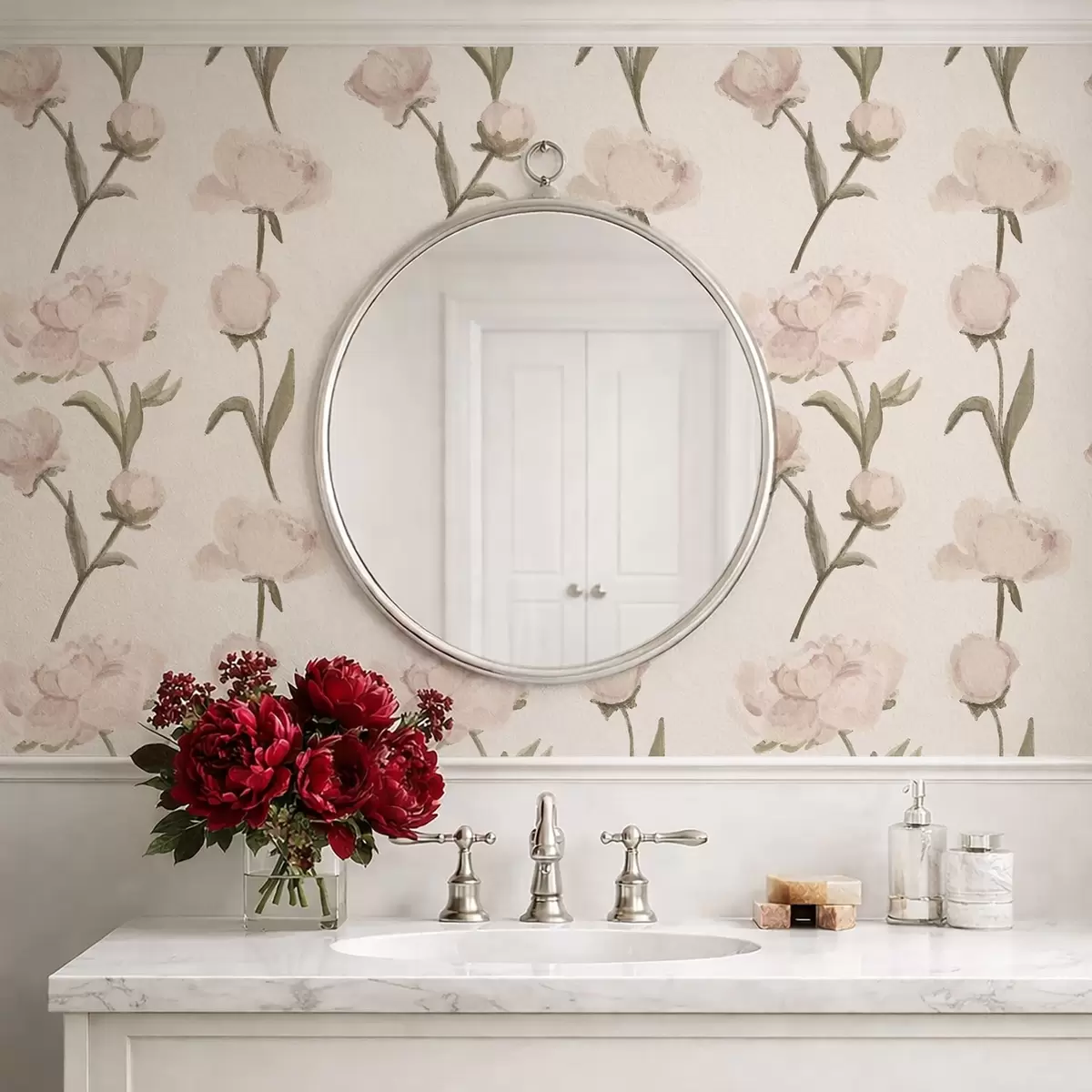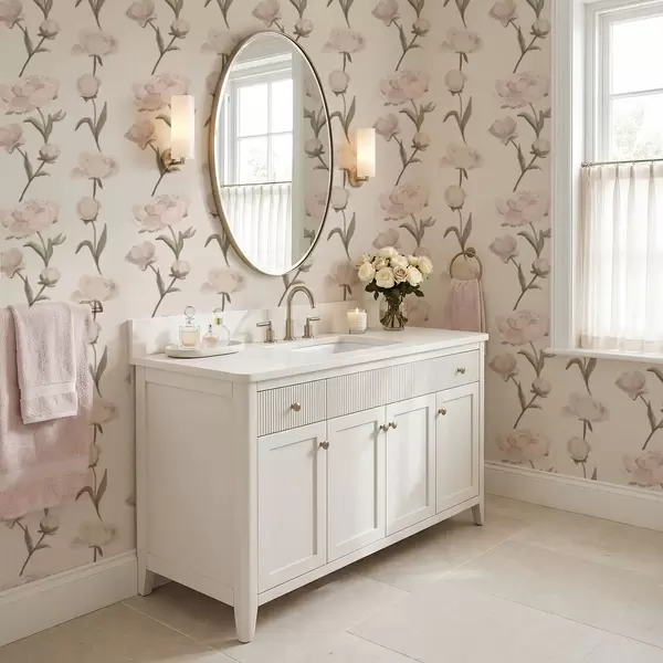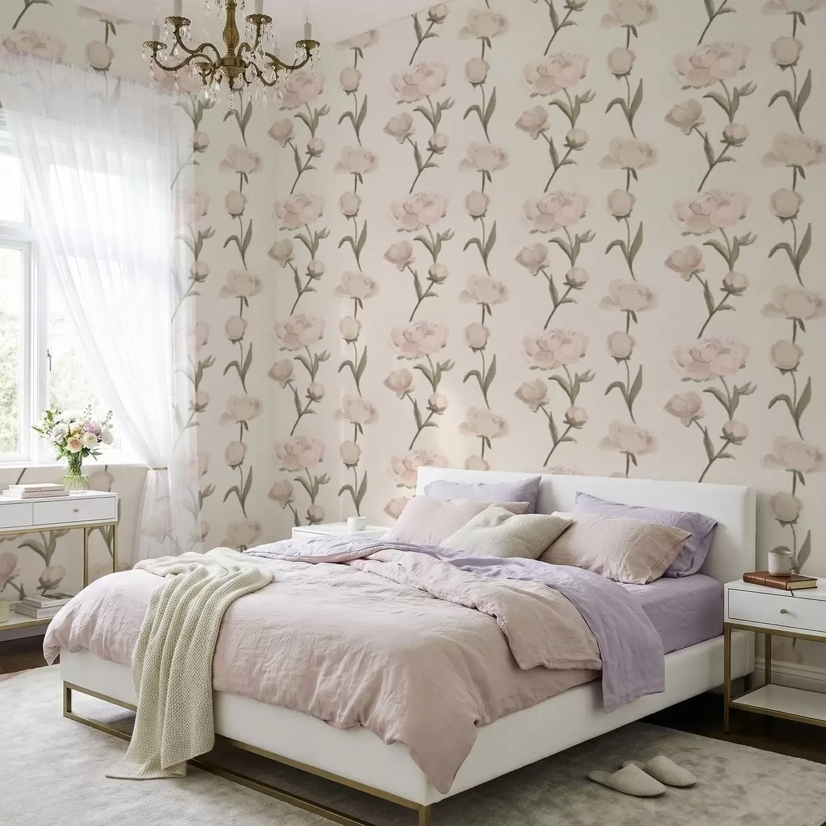 Behang Zachtroze pioenrozen op lichte achtergrond Nr. a01114