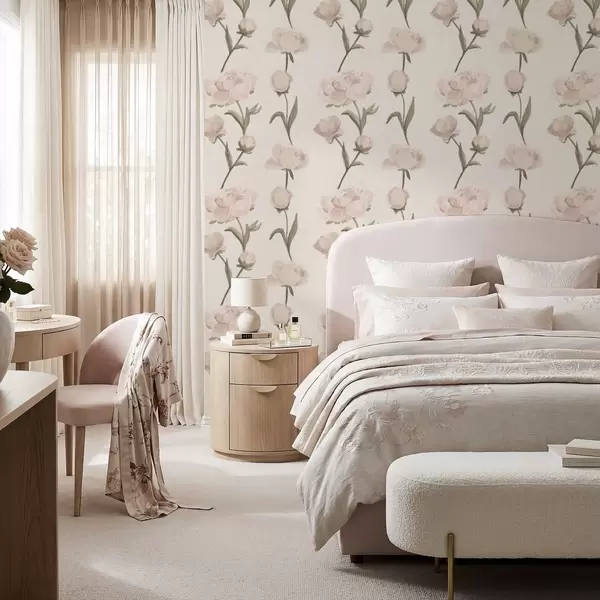 Behang Zachtroze pioenrozen op lichte achtergrond Nr. a01114