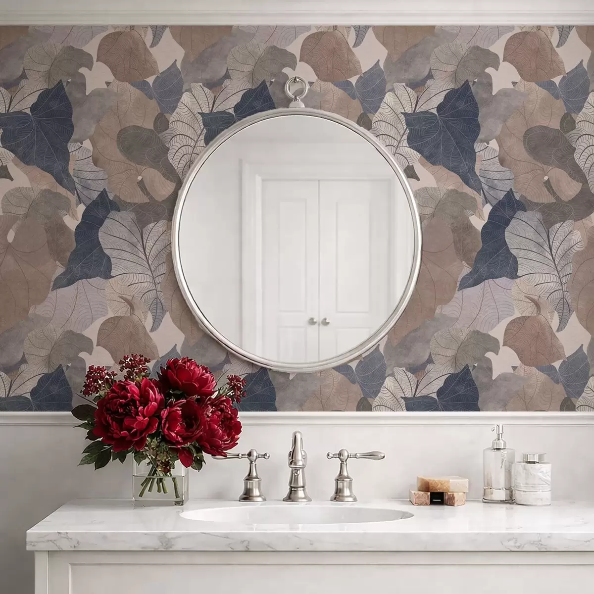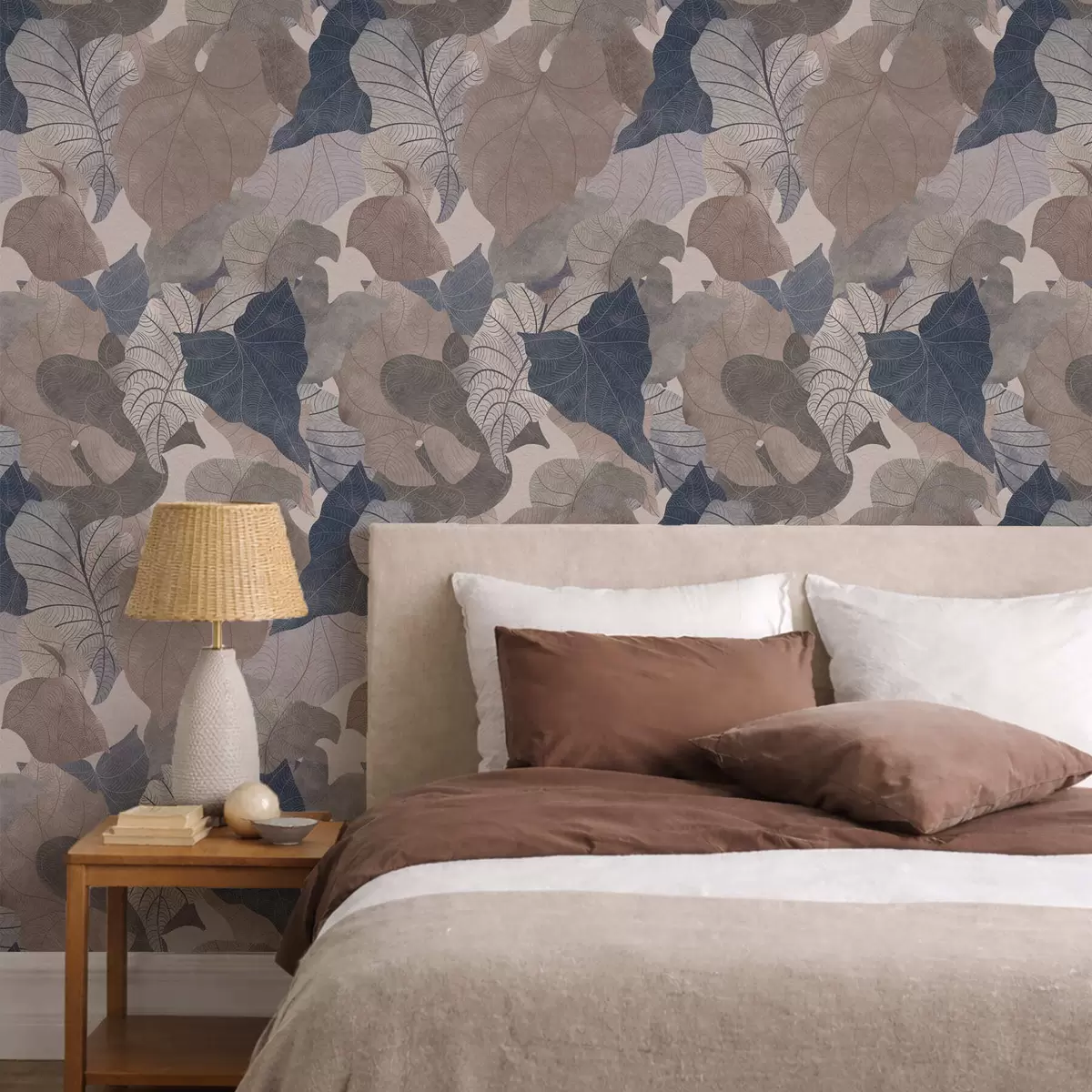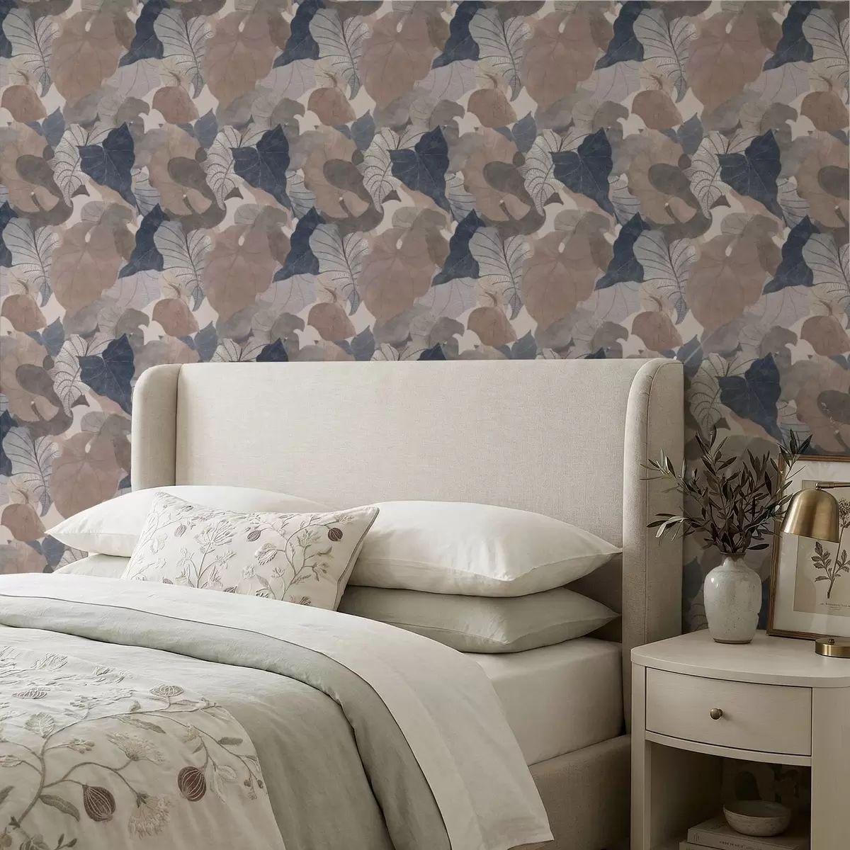 Behang Grote gestileerde bladeren in pasteltinten Nr. a01115