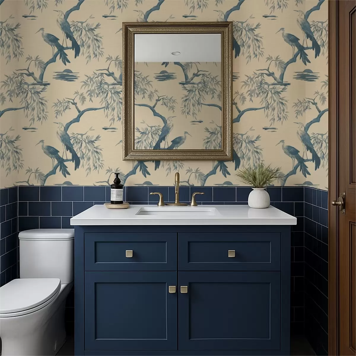 Behang Vogels op een tak in blauwe tinten Nr. a01116