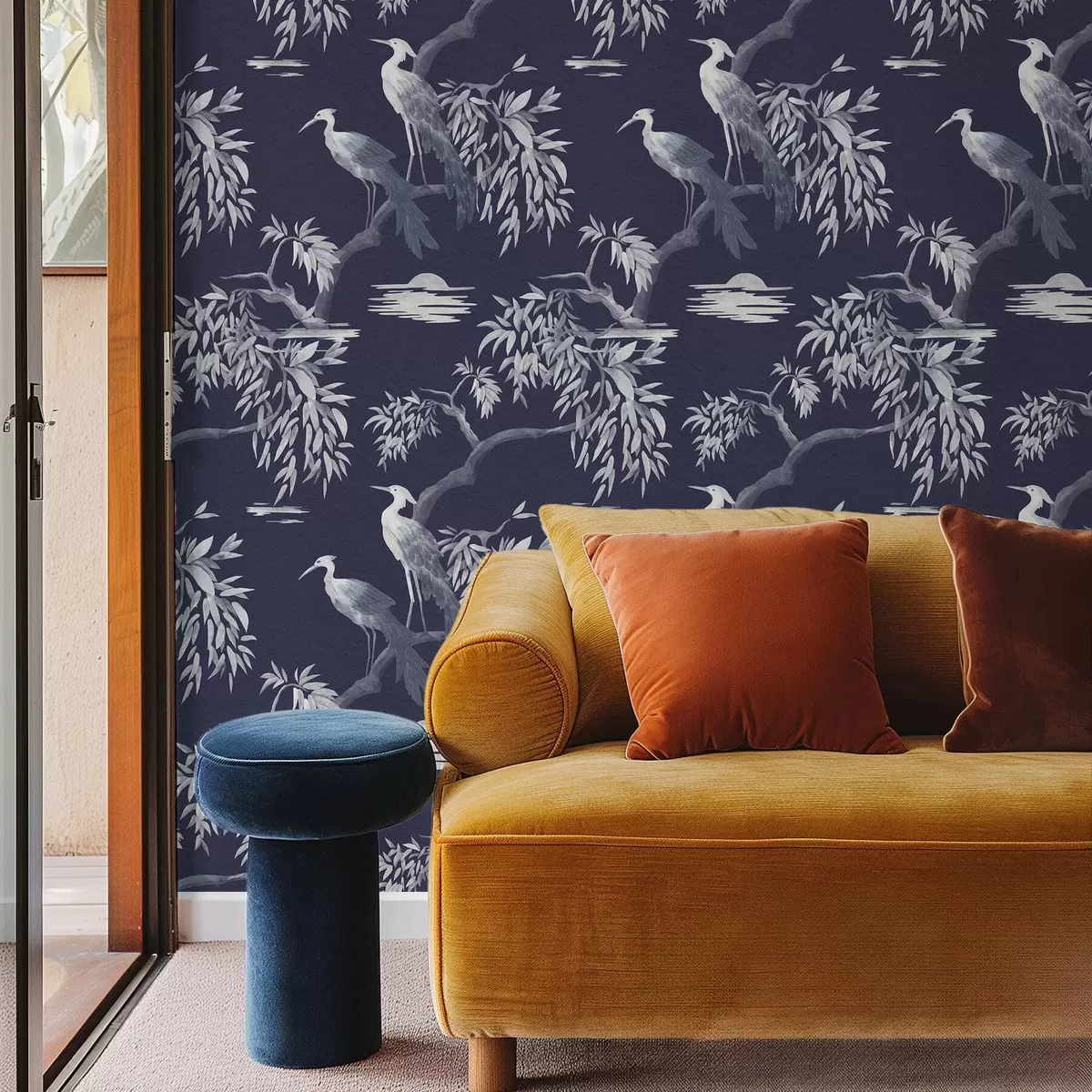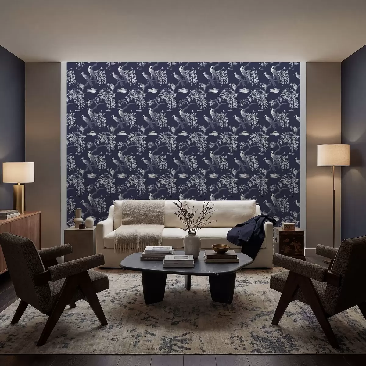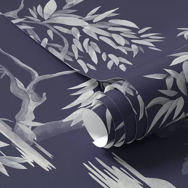 Behang Vogels op tak op donkerblauwe achtergrond Nr. a01116v1