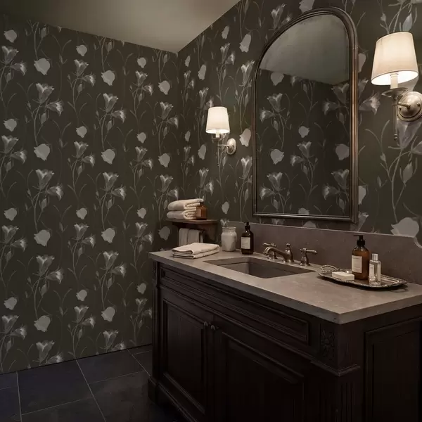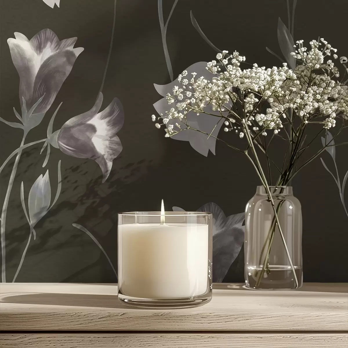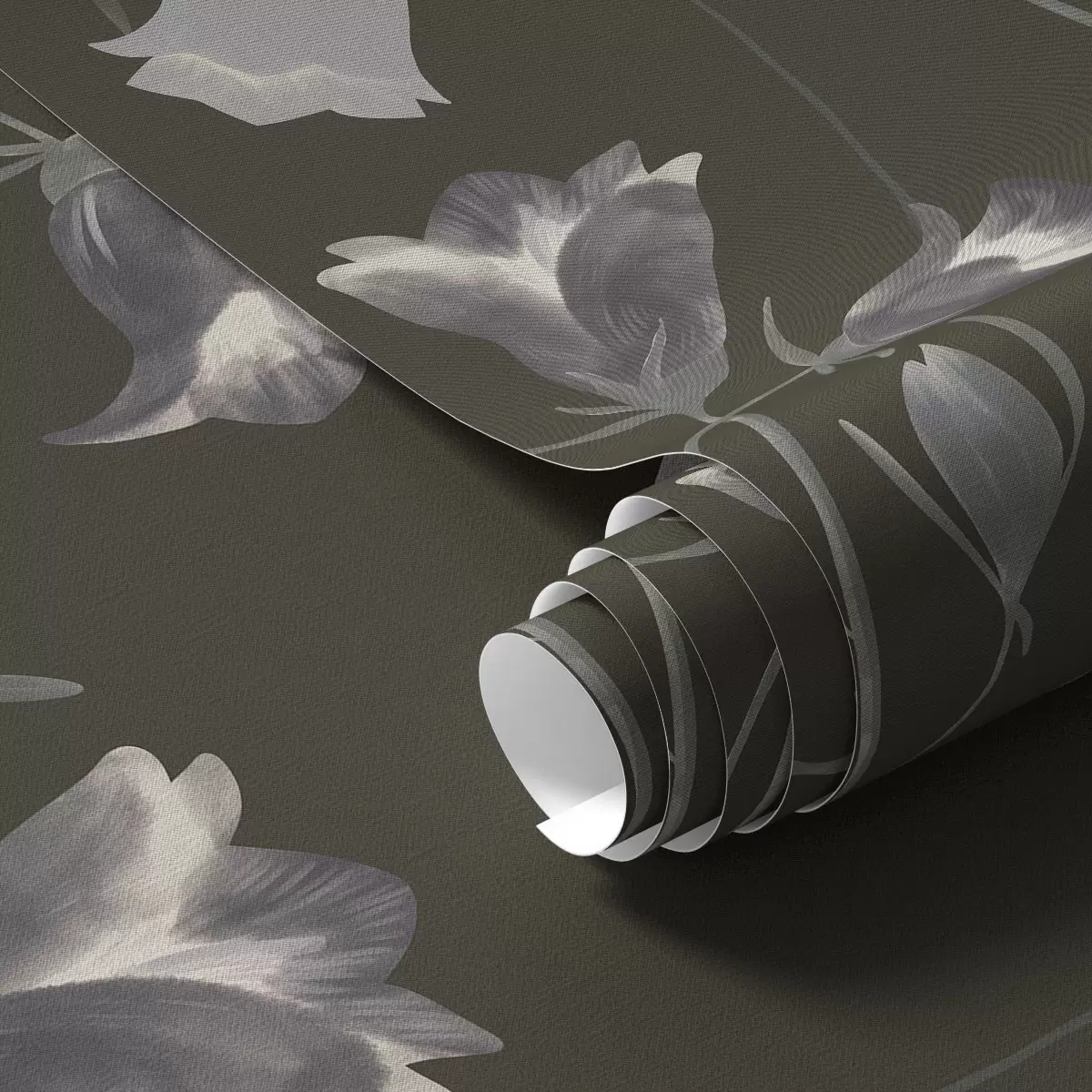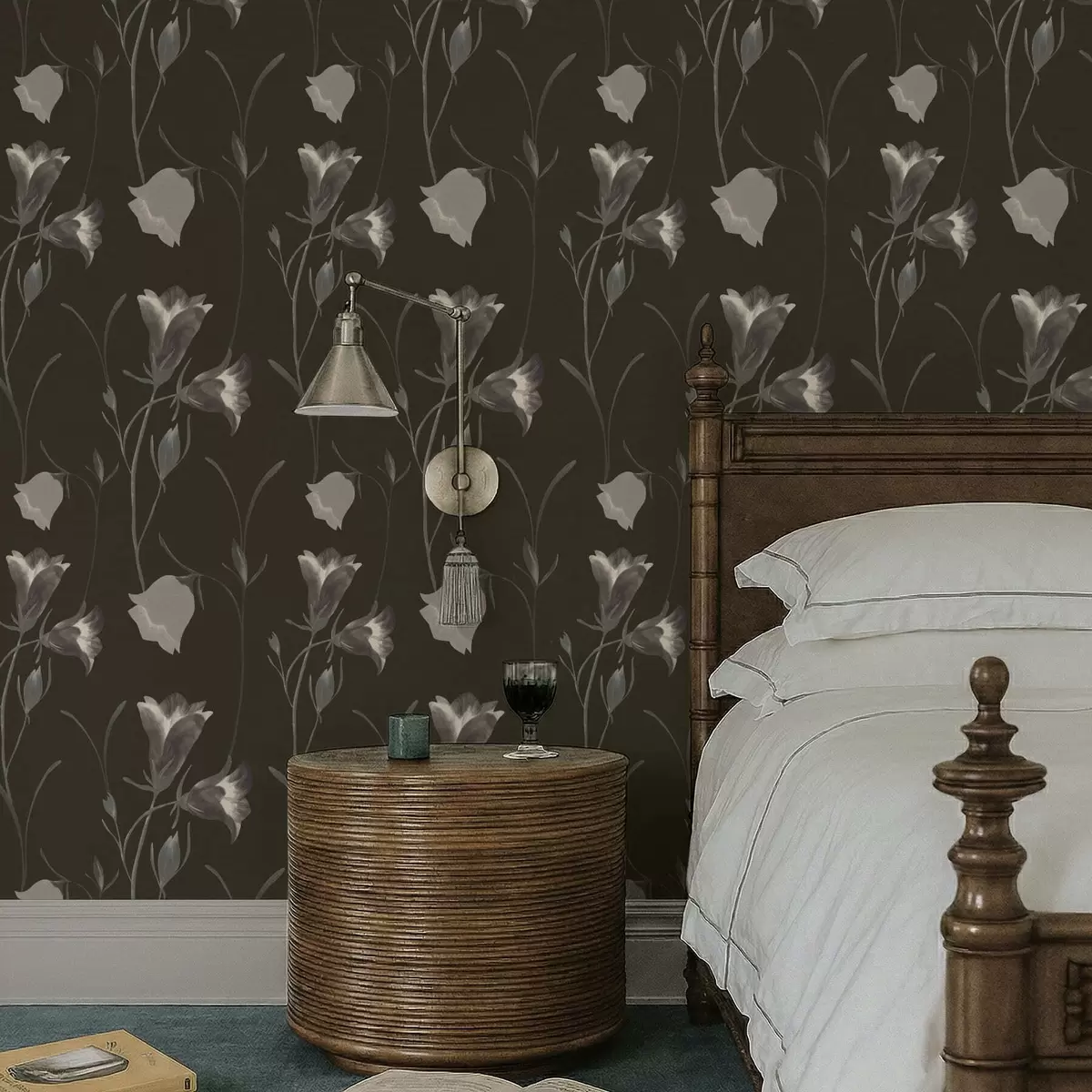 Behang Grijze klokjesbloemen op donkere achtergrond Nr. a01119v1