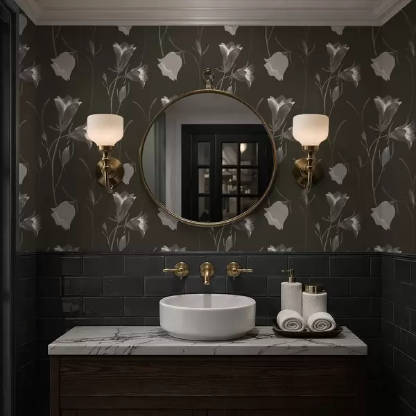 Behang Grijze klokjesbloemen op donkere achtergrond Nr. a01119v1
