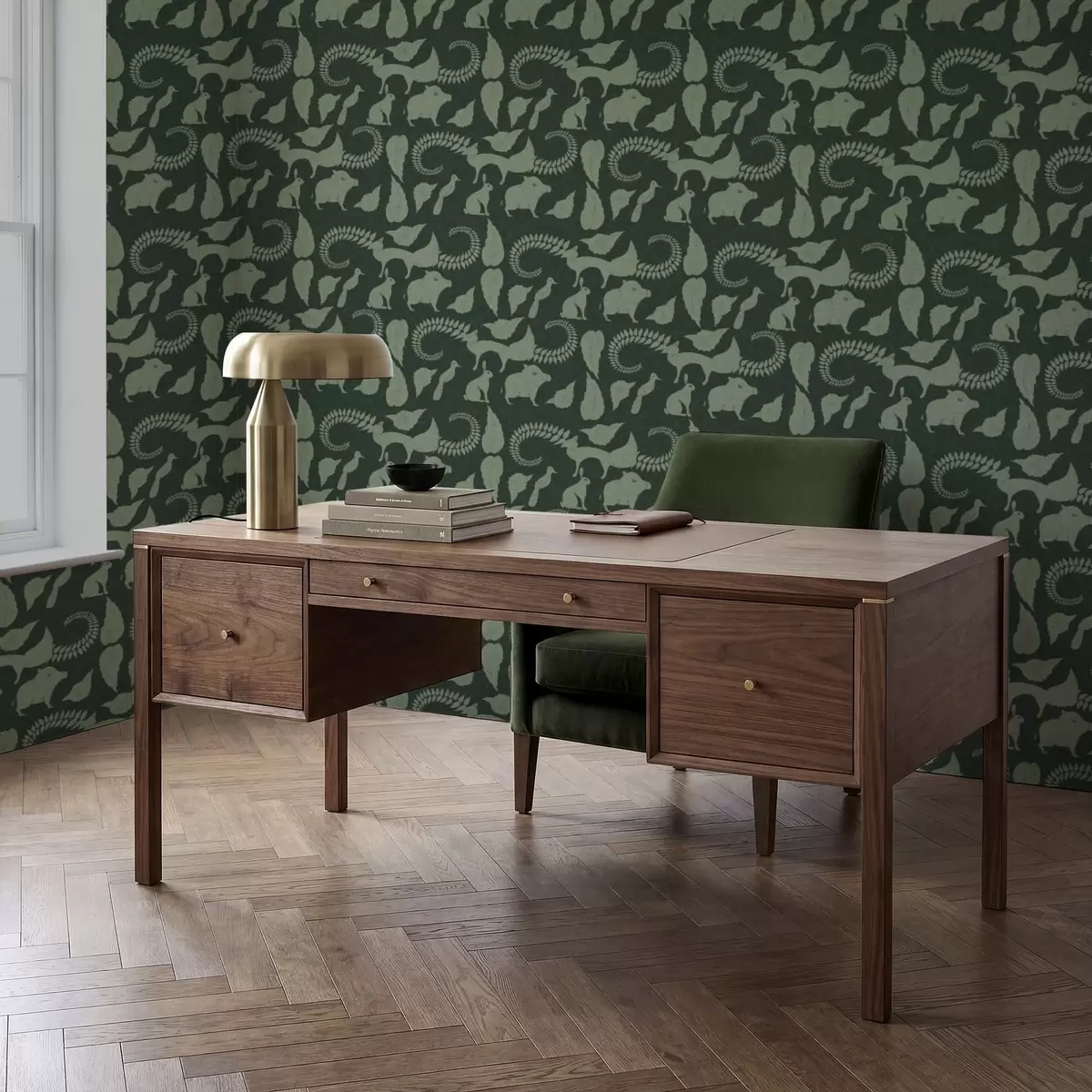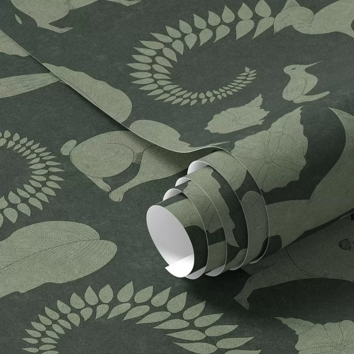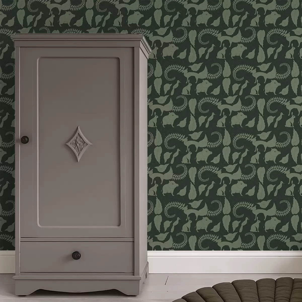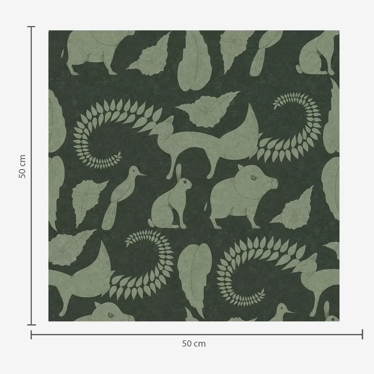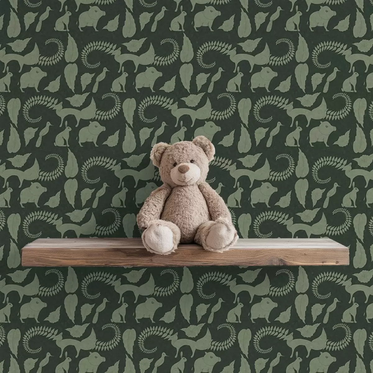 Behang Bospatroon met dieren op groene achtergrond Nr. a01121v1