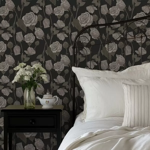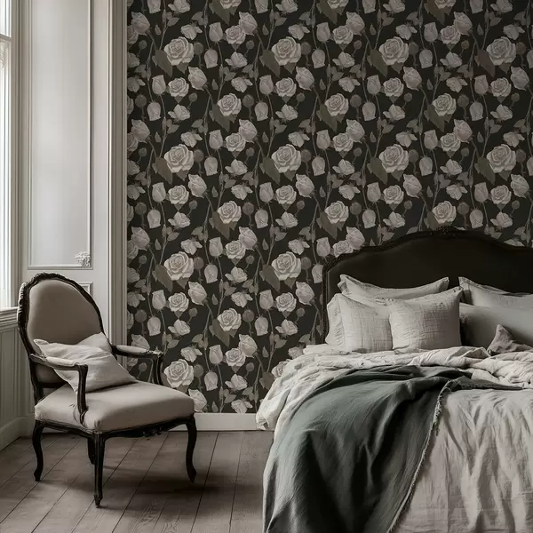 Behang Bloemenpatroon met rozen op donkere achtergrond Nr. a01123