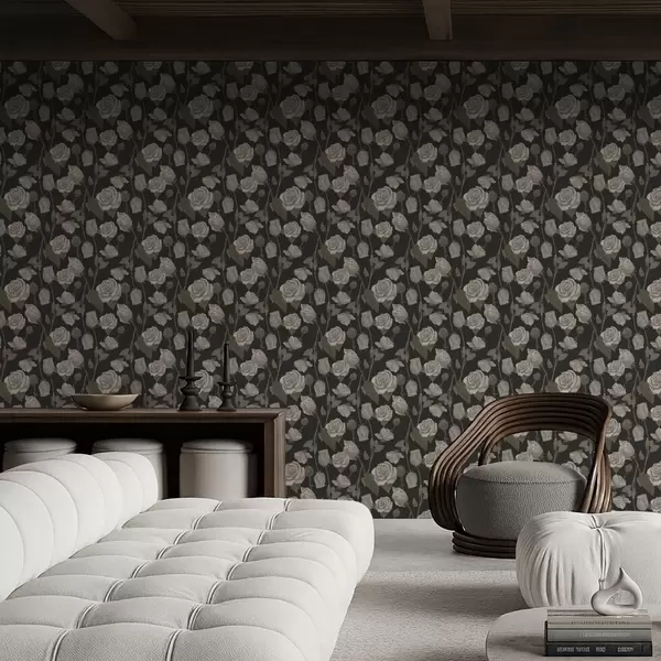Behang Bloemenpatroon met rozen op donkere achtergrond Nr. a01123