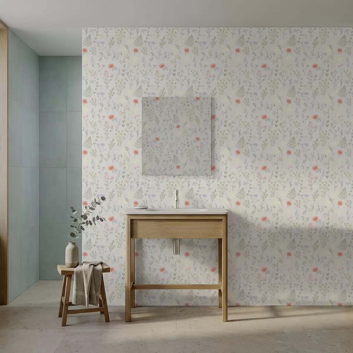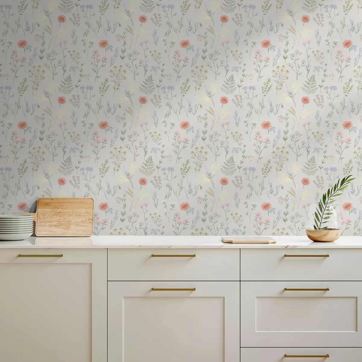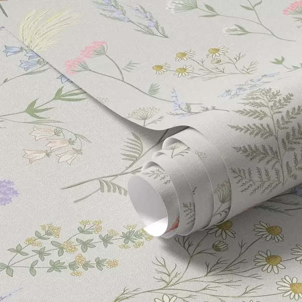 Behang Fijn patroon van wilde bloemen op een lichte achtergrond Nr. a01152