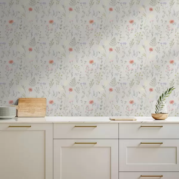 Behang Fijn patroon van wilde bloemen op een lichte achtergrond Nr. a01152