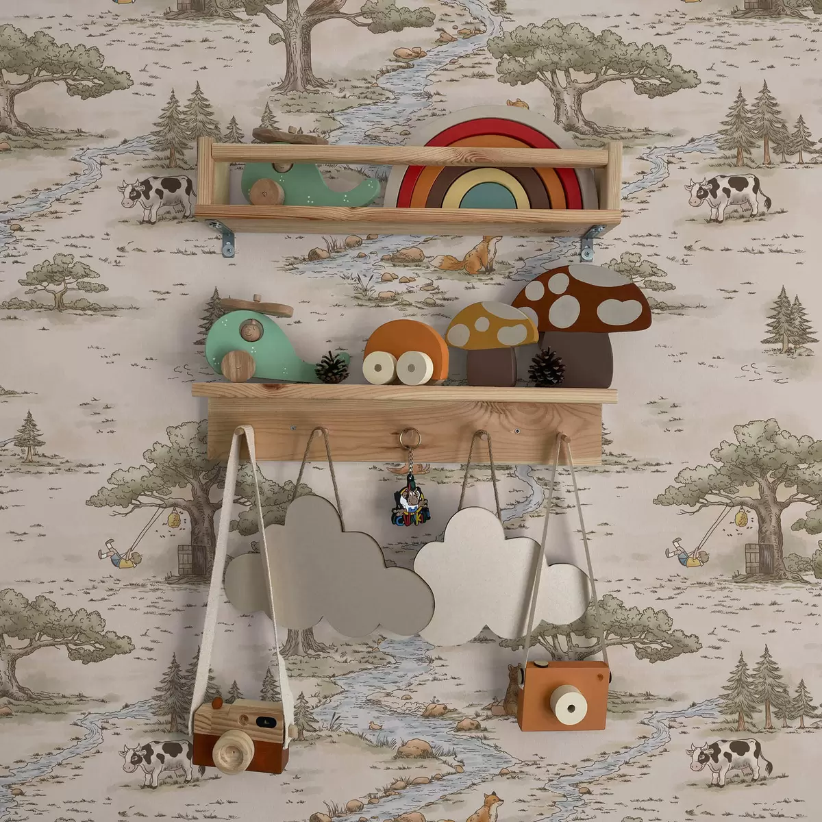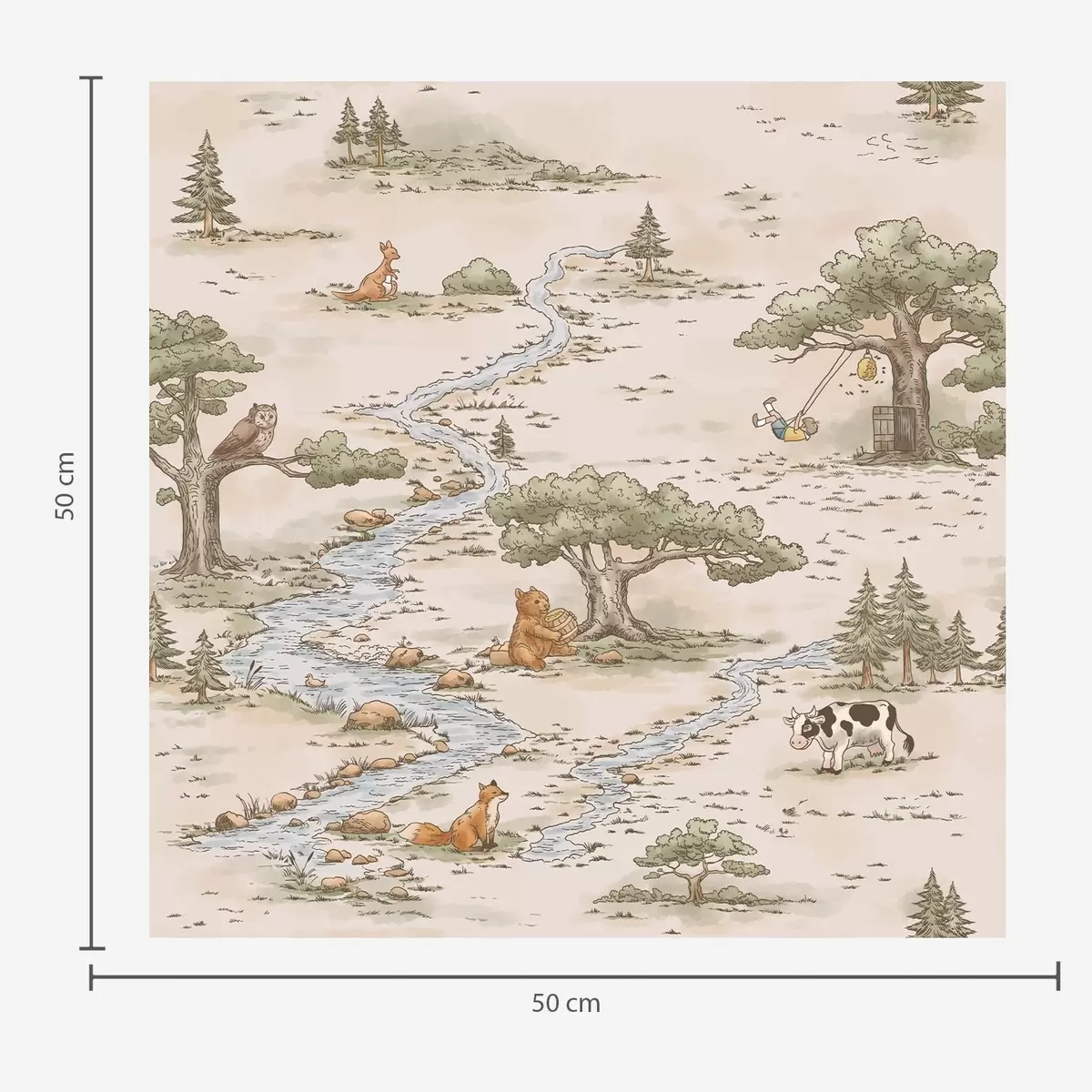 Behang Natuurillustratie met dieren en een rivier Nr. a01157
