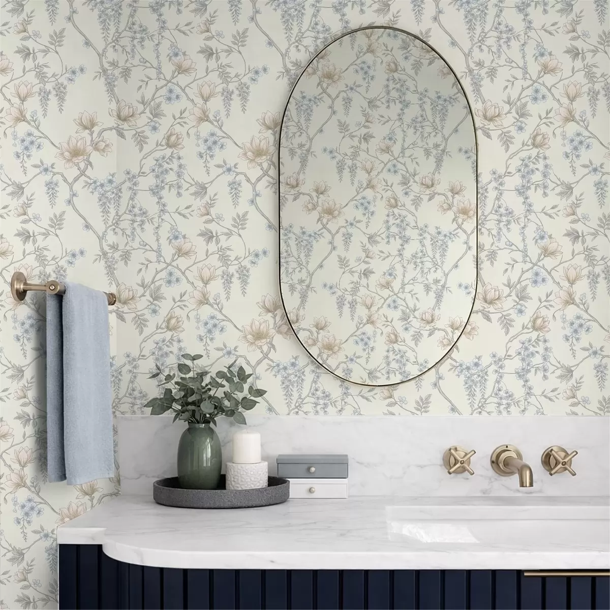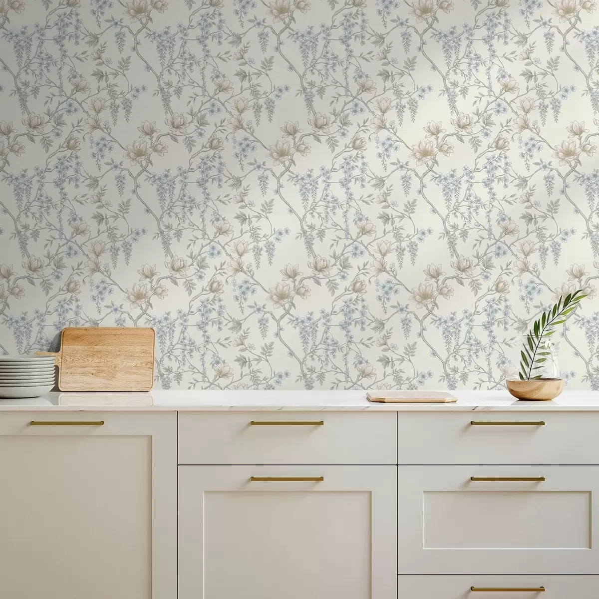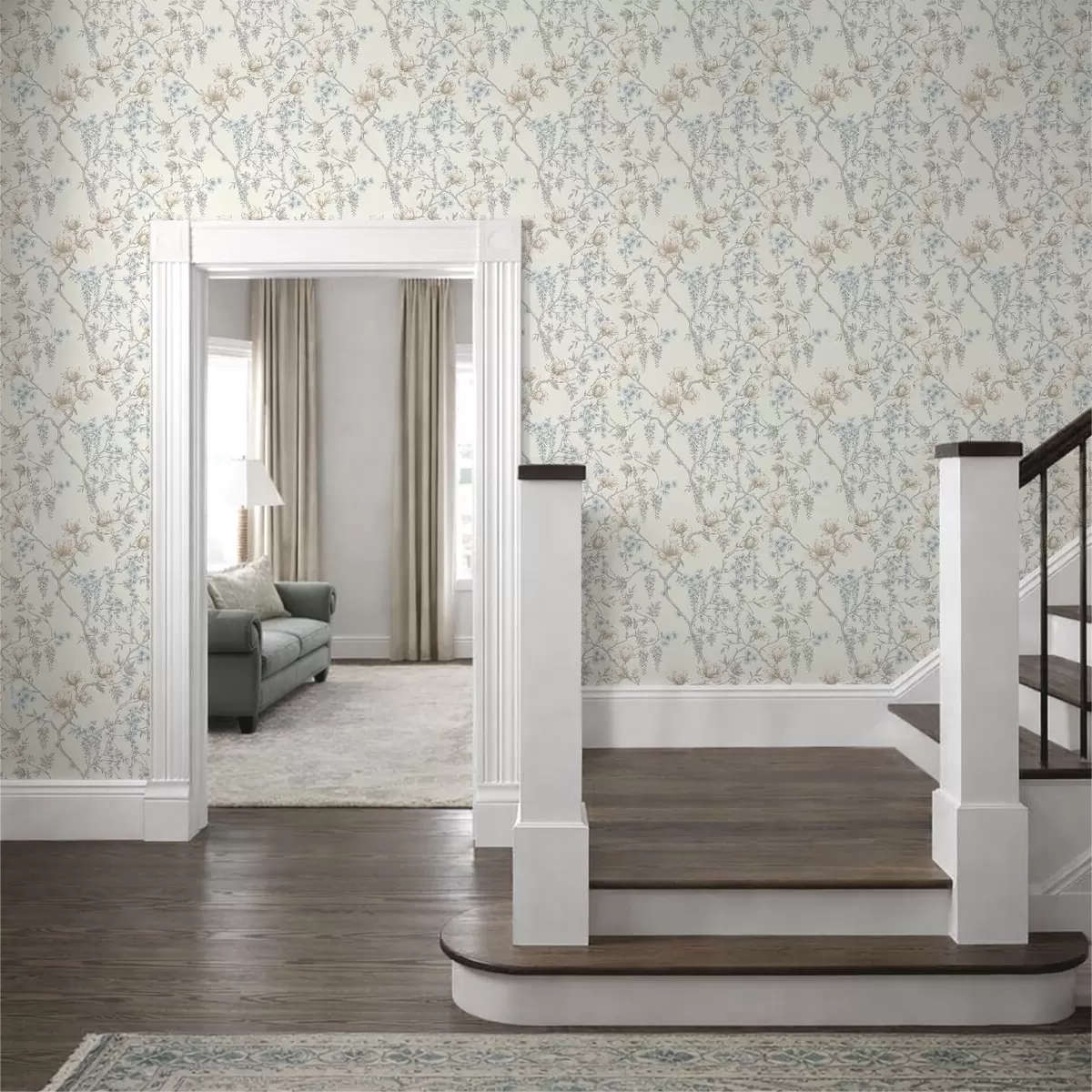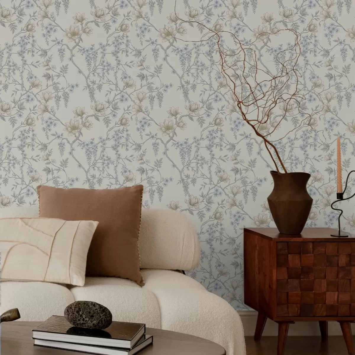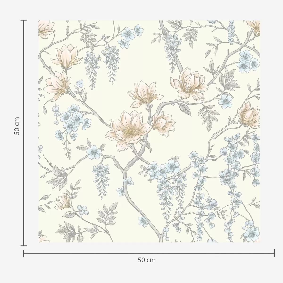 Behang Fijn bloemenpatroon met takken en bloemen Nr. a01159