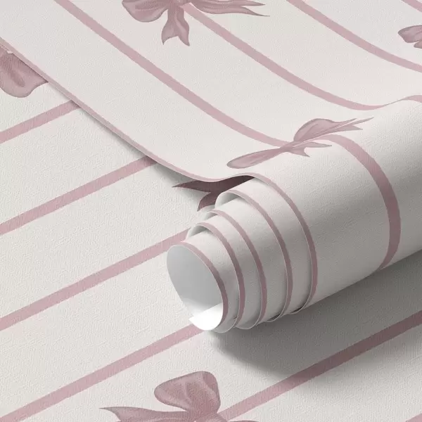 Behang Roze strikken op verticale strepen tegen een lichte achtergrond Nr. a01162