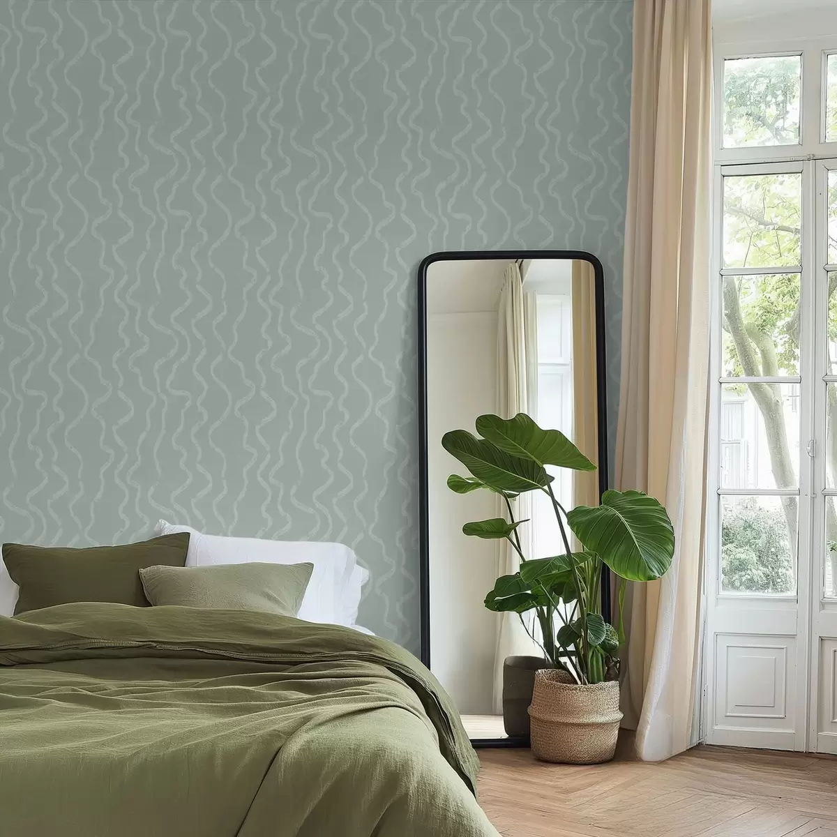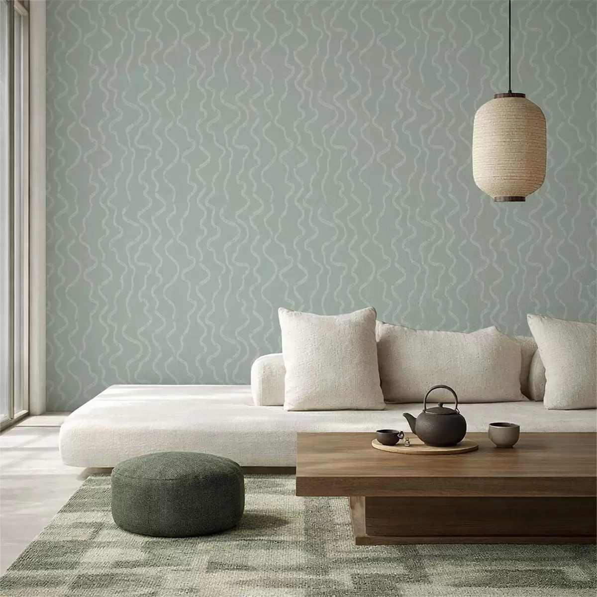 Behang Golvend lichtpatroon op een groene achtergrond Nr. a01167v2