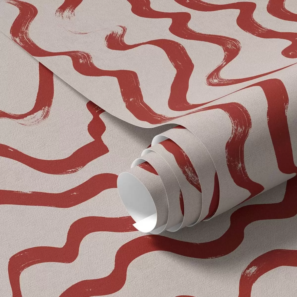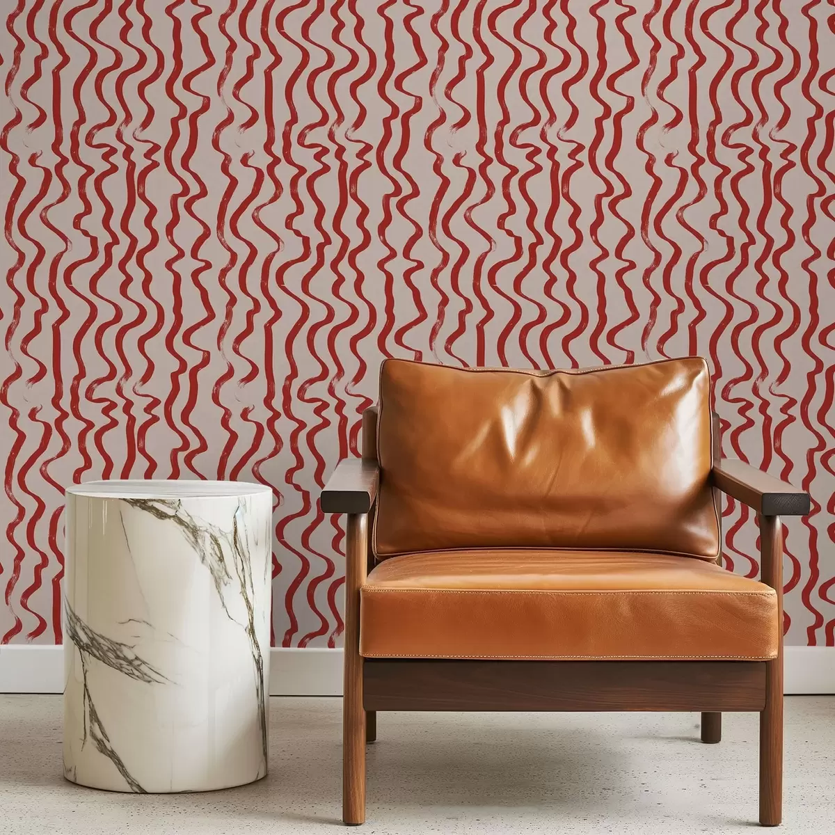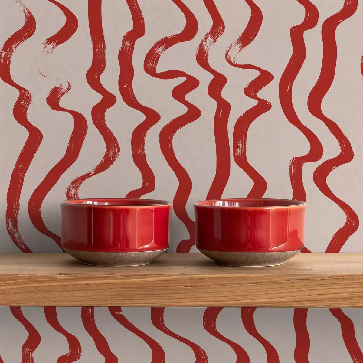 Behang Rode golvende lijnen op een lichte achtergrond Nr. a01168