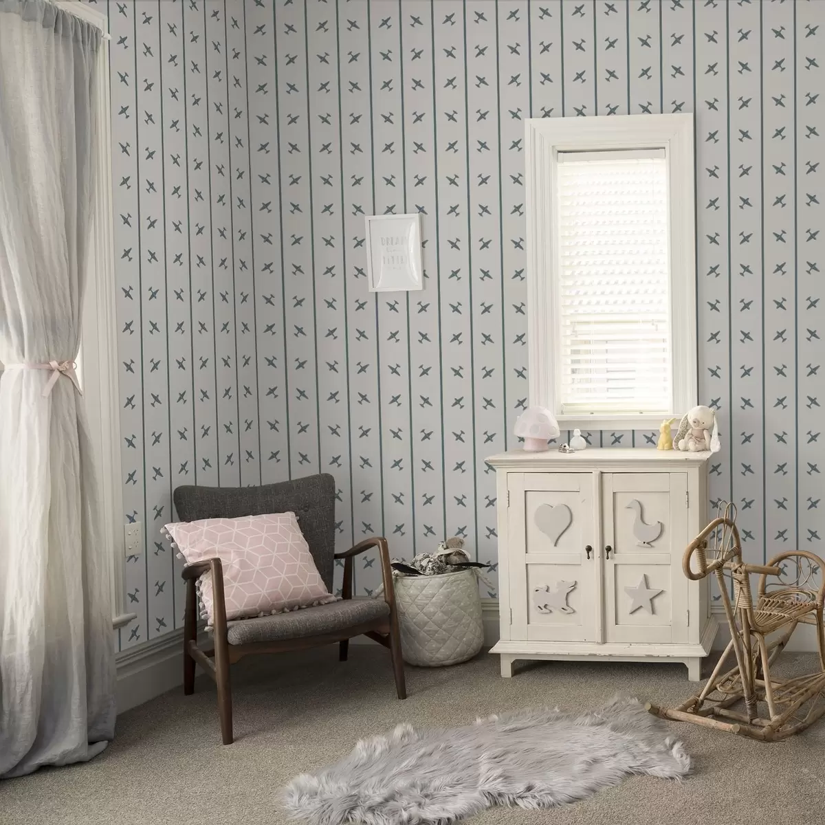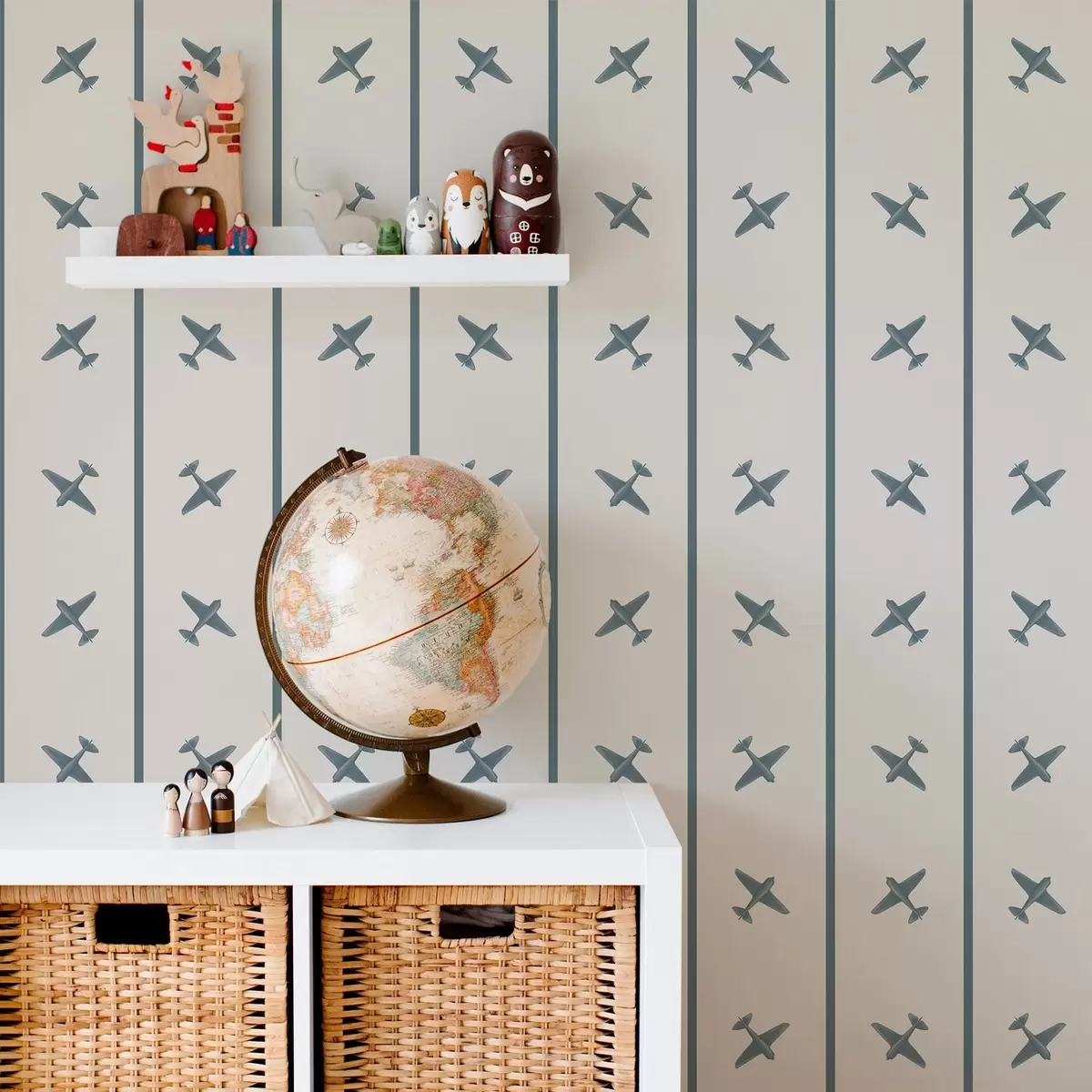 Behang Vliegtuigen met een gestreept patroon en blauwe accenten Nr. a01169