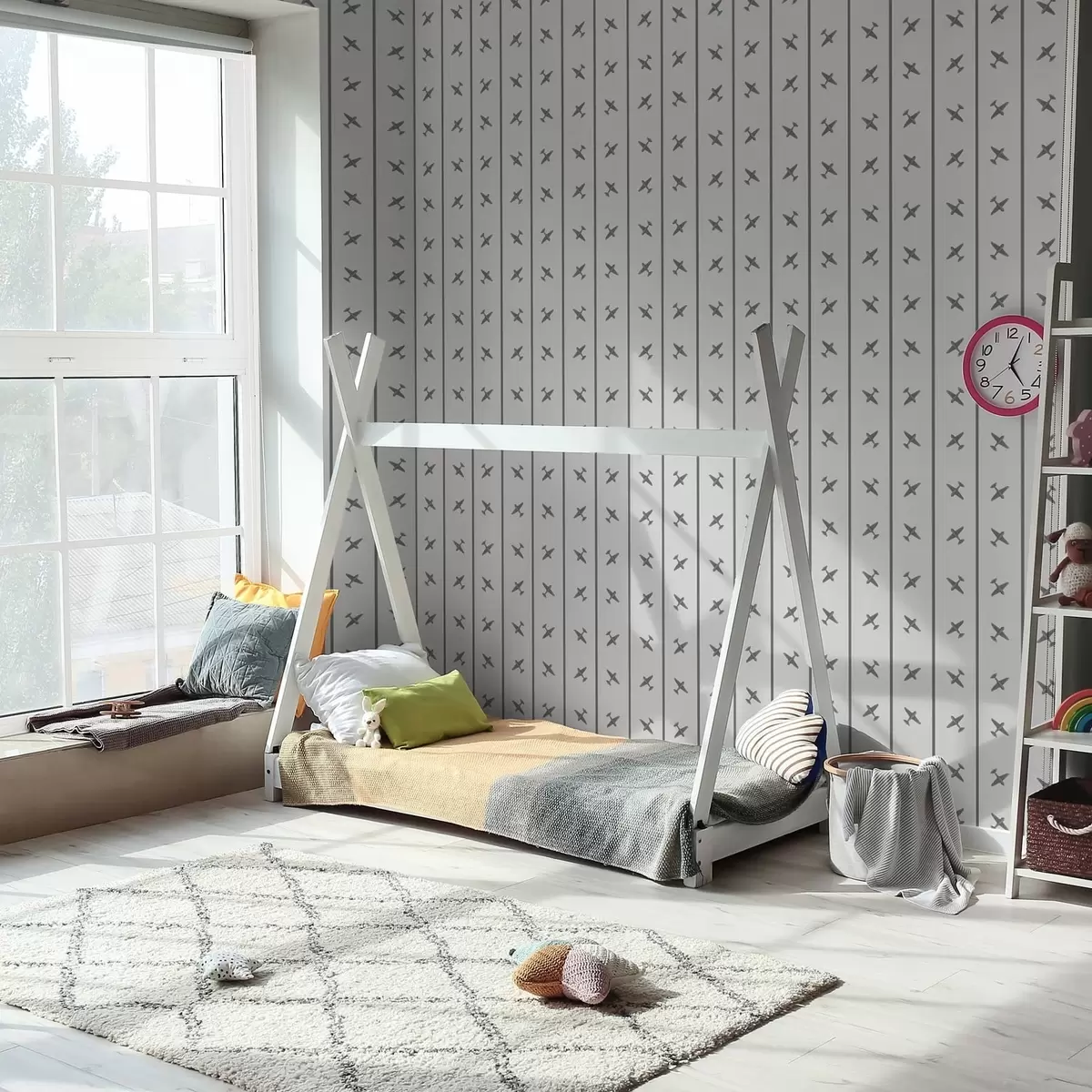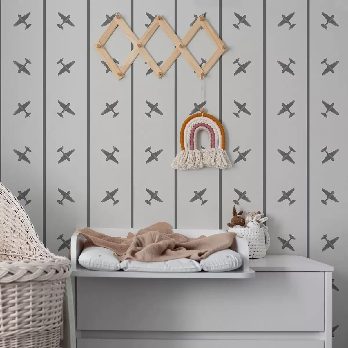 Behang Vliegtuigen met een gestreept patroon in grijstinten Nr. a01169v2