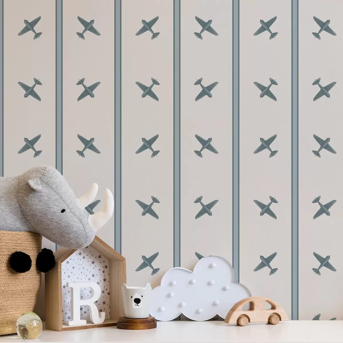 Behang Vliegtuigen met een gestreept patroon met blauwe strepen Nr. a01170