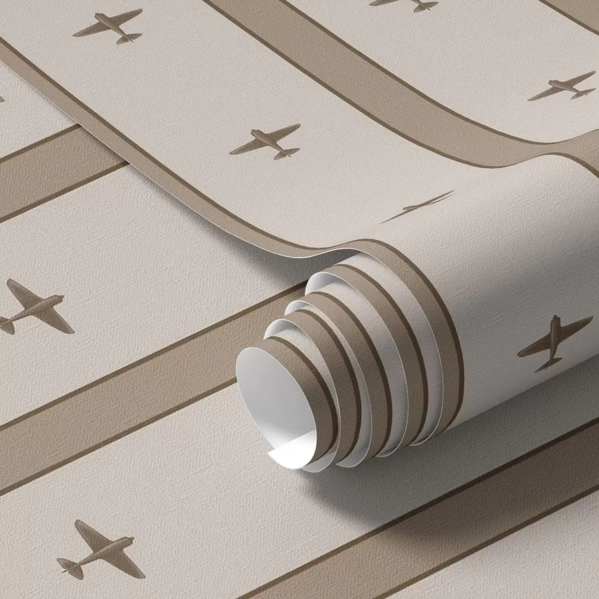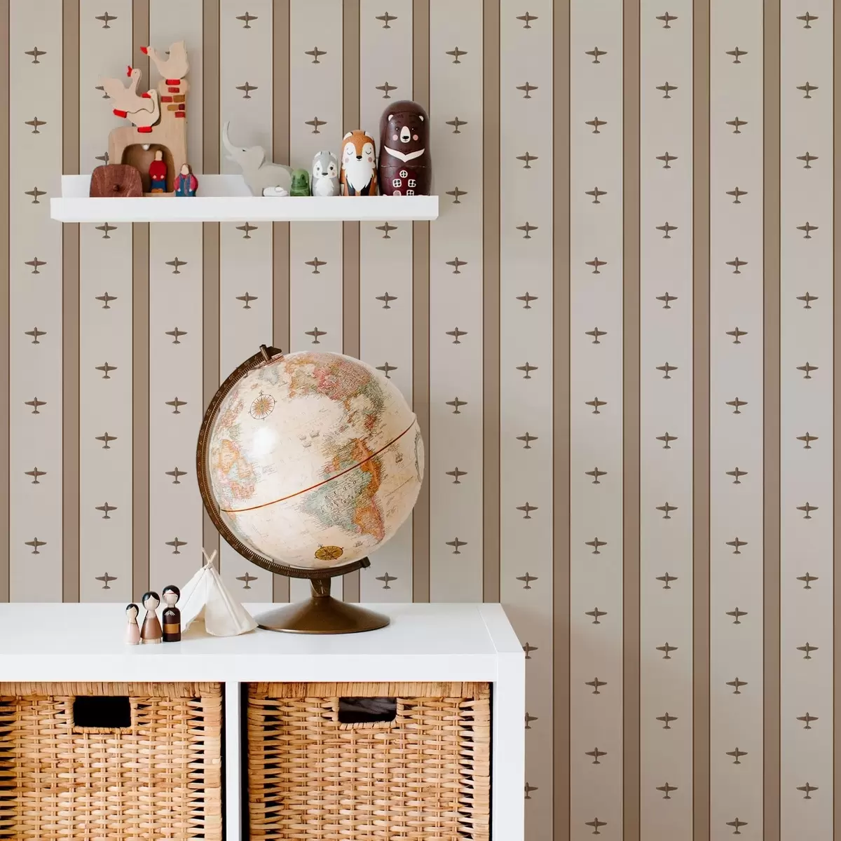 Behang Kleine vliegtuigjes met strepen op een bruine achtergrond Nr. a01171v2