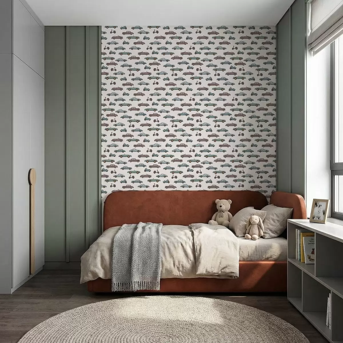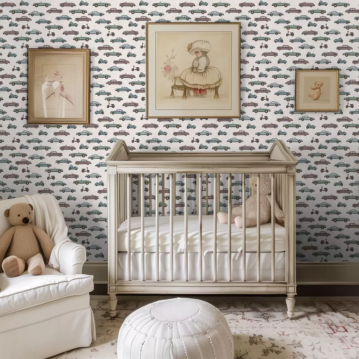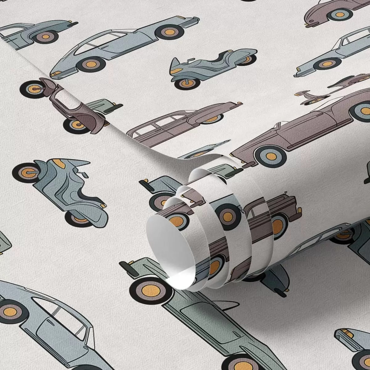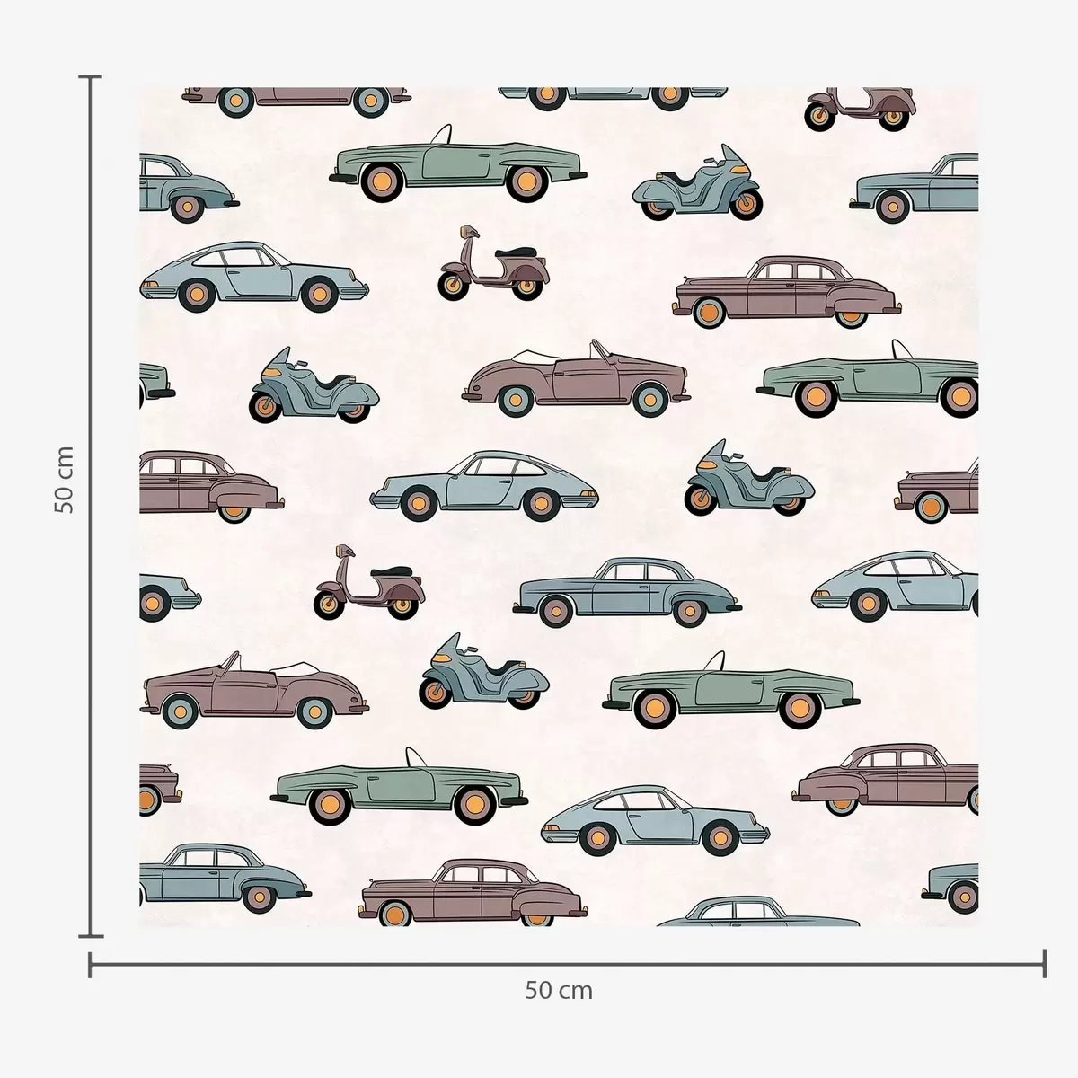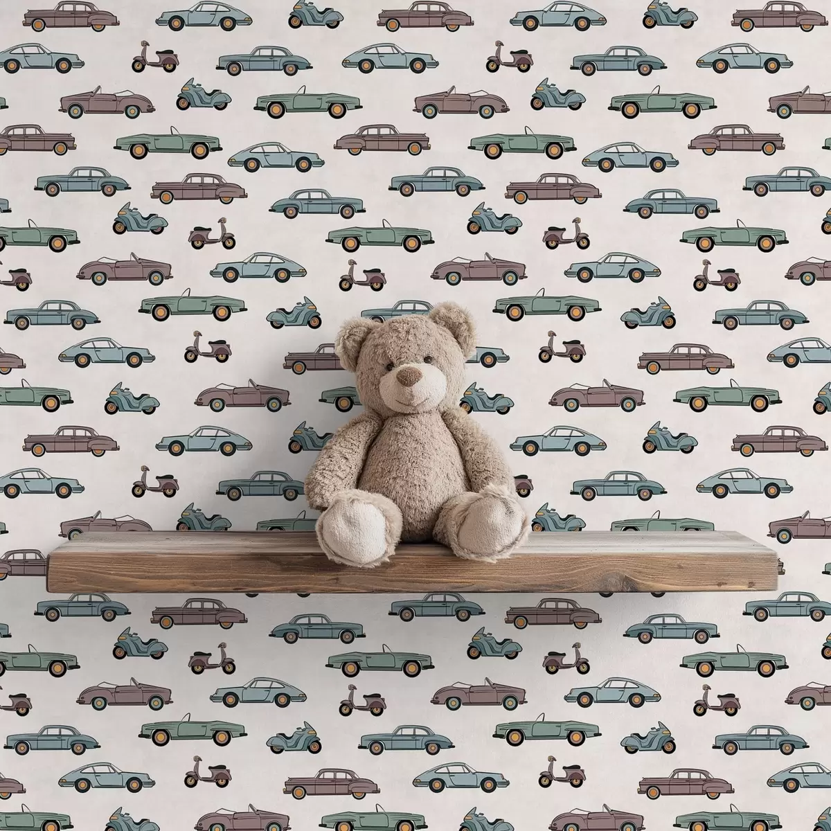 Behang Retro-auto’s en -scooters op een lichte achtergrond Nr. a01172