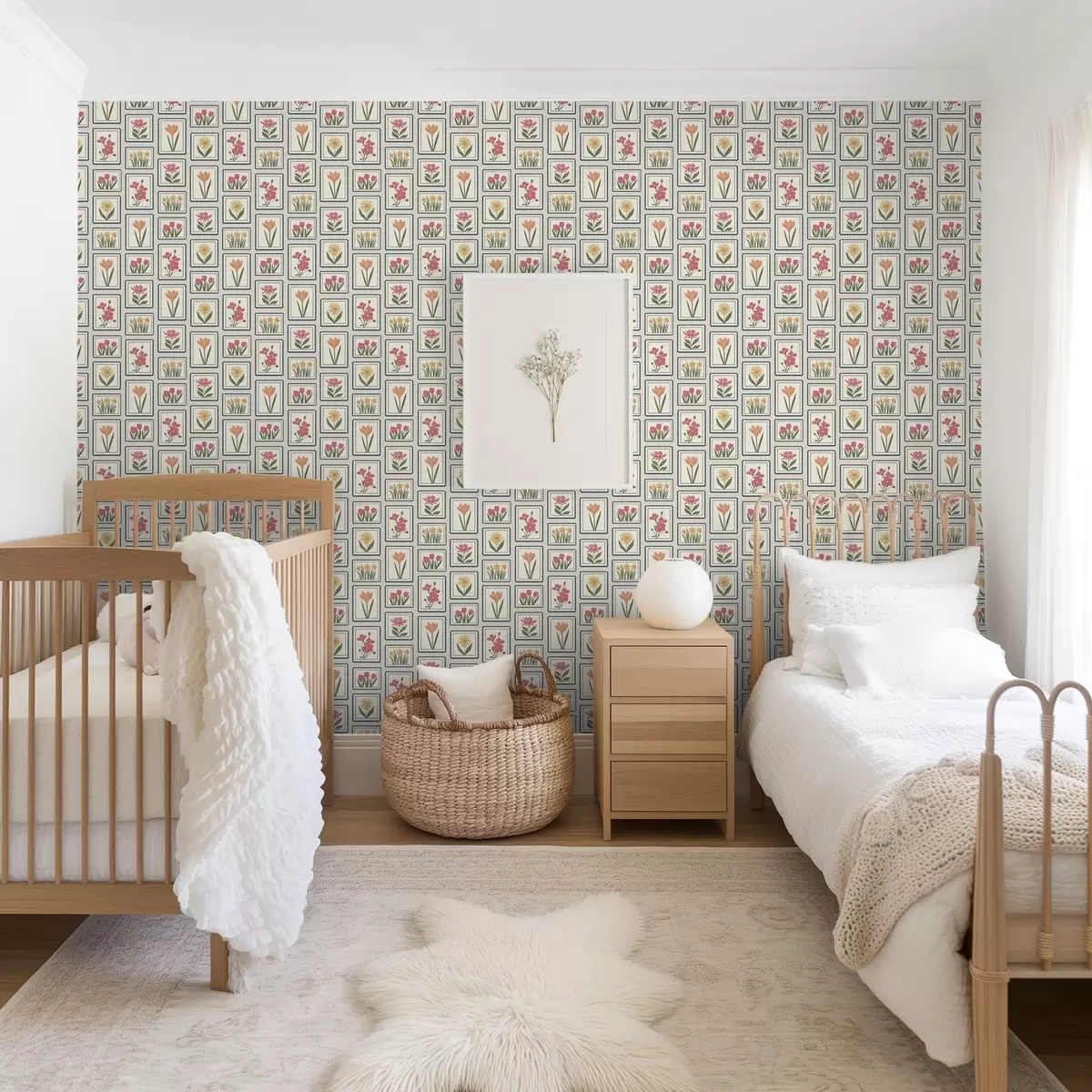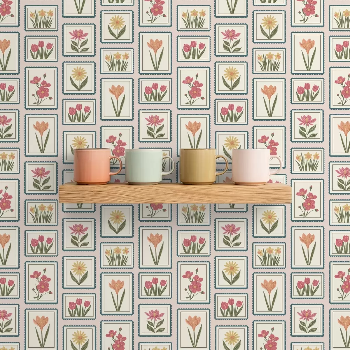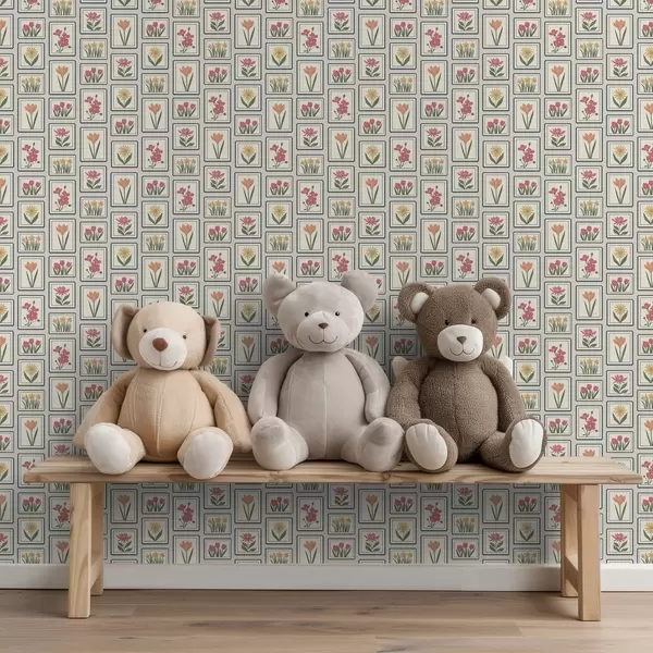 Behang Bloemenillustraties in lijst met rand Nr. a01174