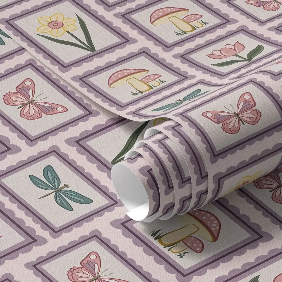Behang Ingelijste illustraties in lila tinten Nr. a01175v1