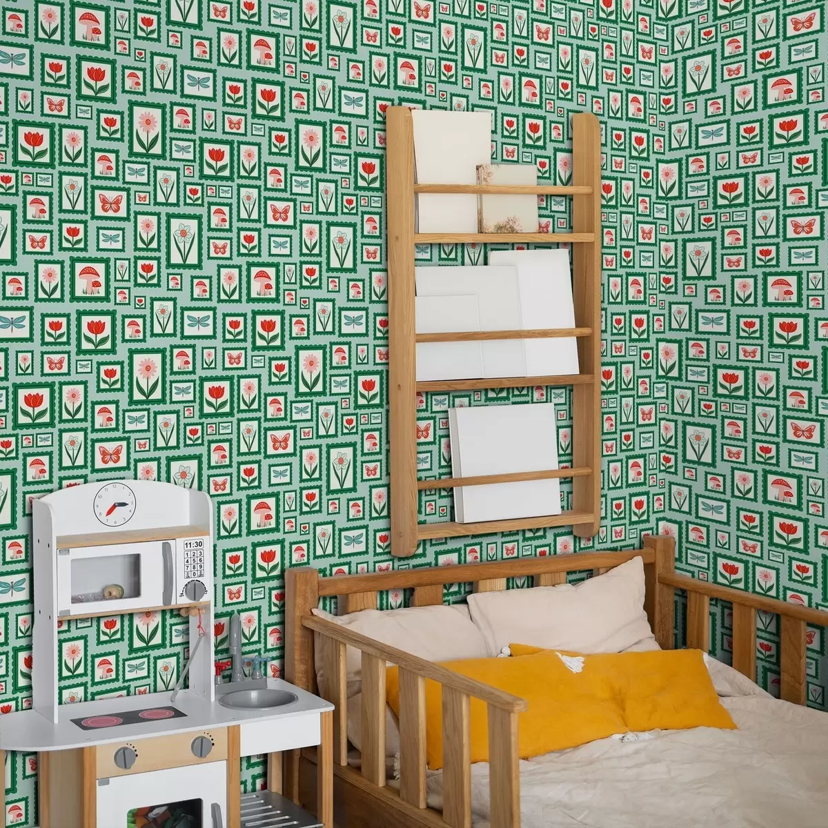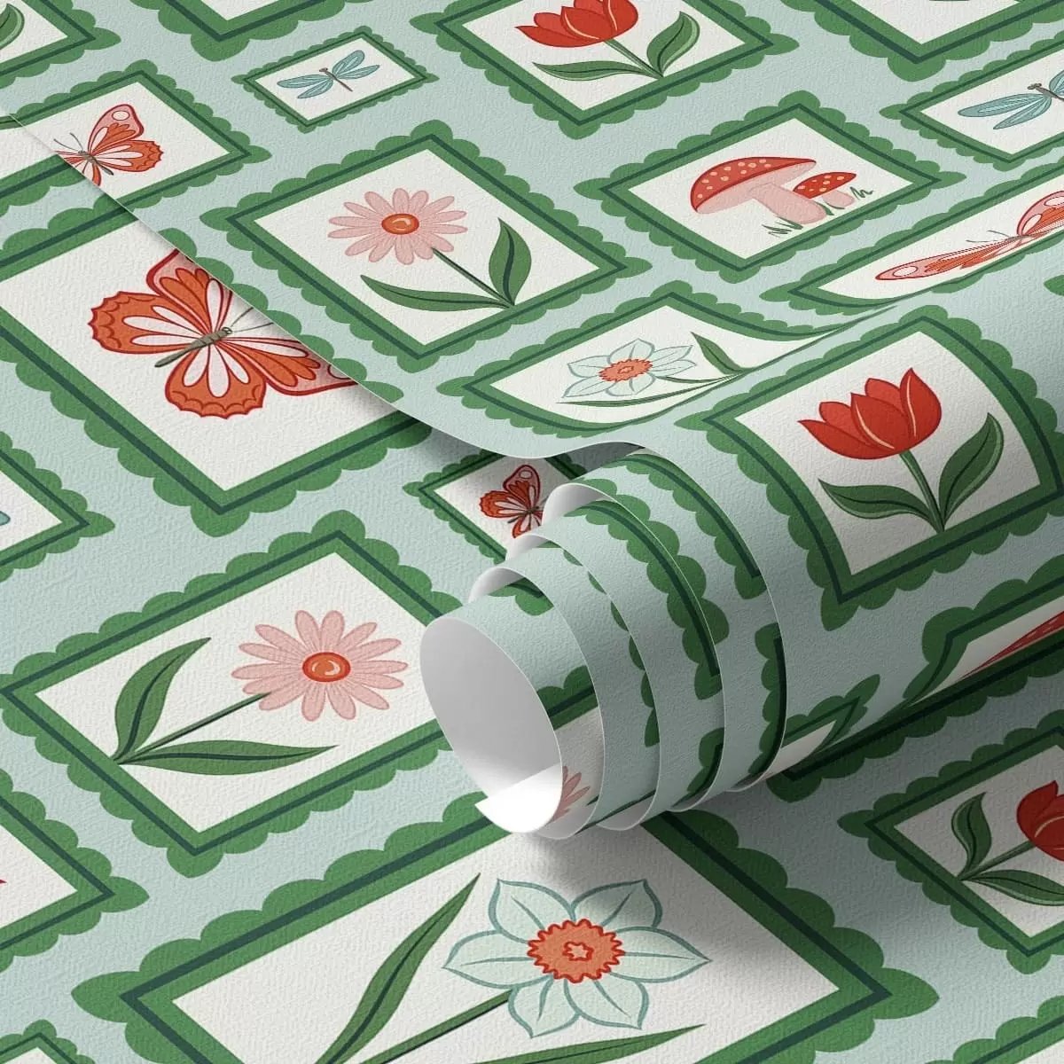 Behang Ingelijste illustraties met groene randen Nr. a01176v1