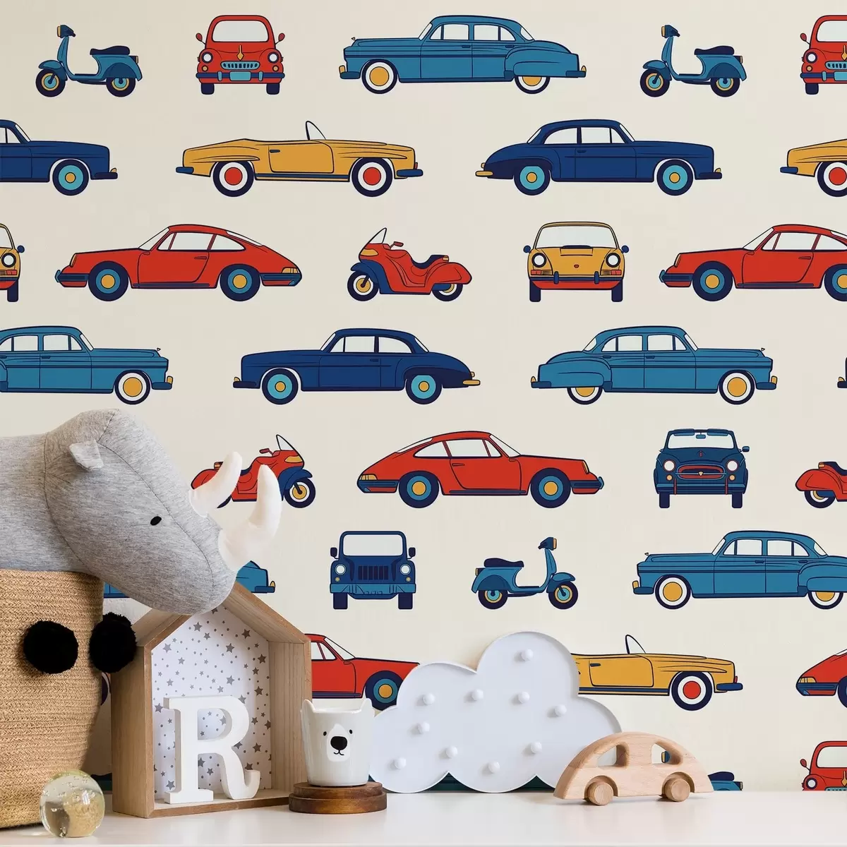 Behang Kleurrijke retro-auto’s en -scooters Nr. a01178v2