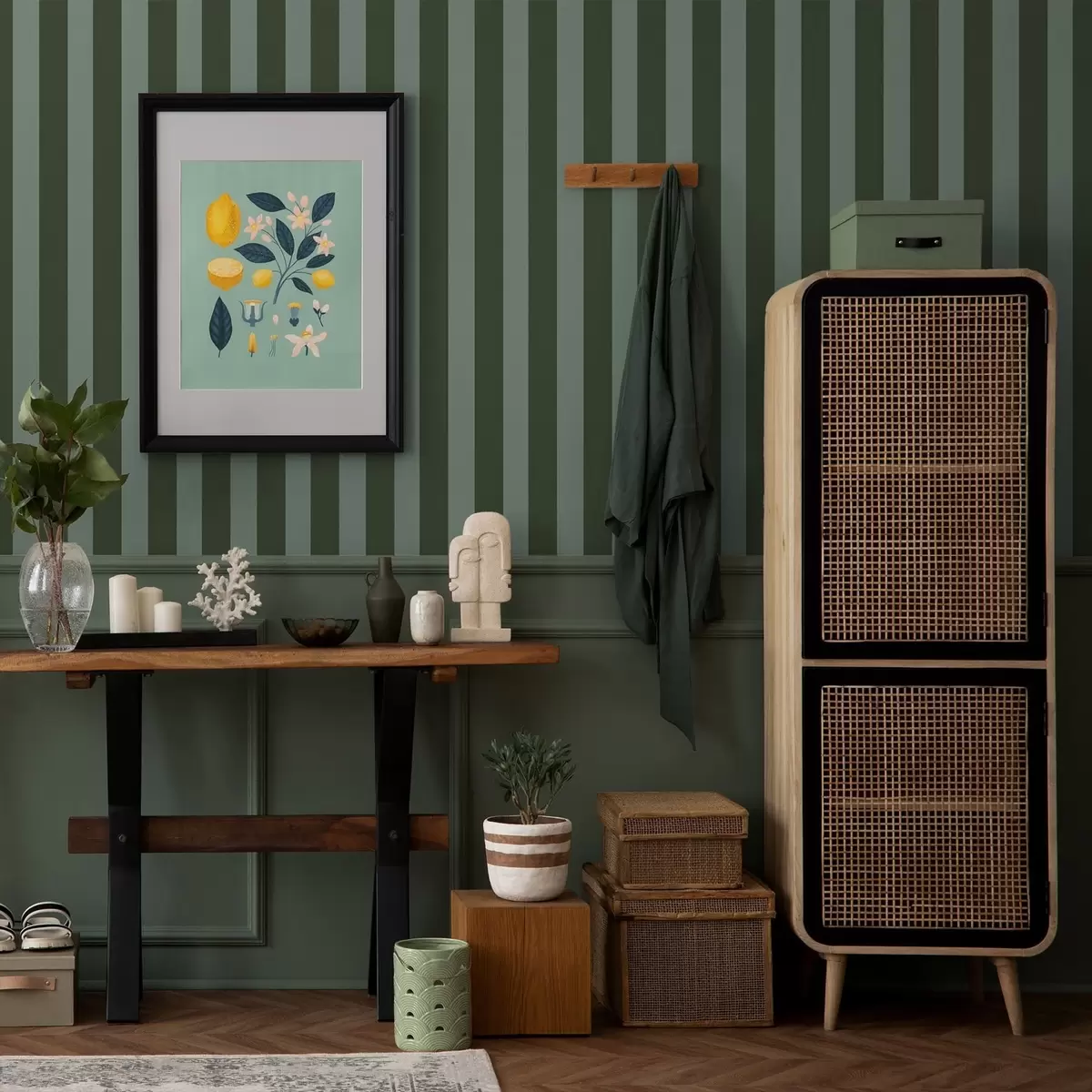 Behang Donkergroene en lichte verticale strepen Nr. a01179v4