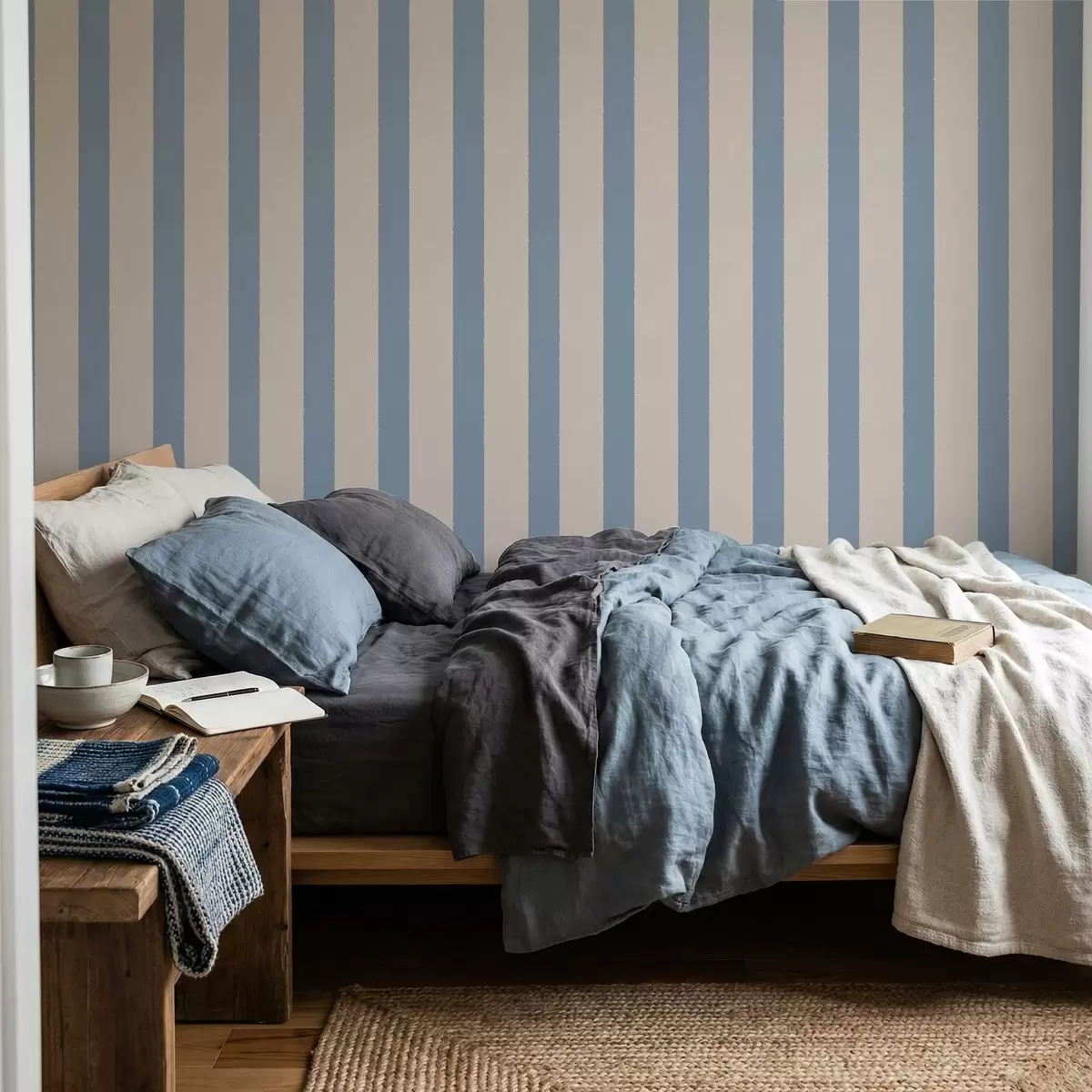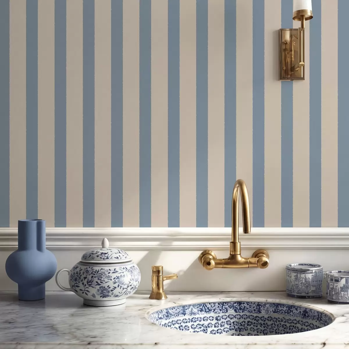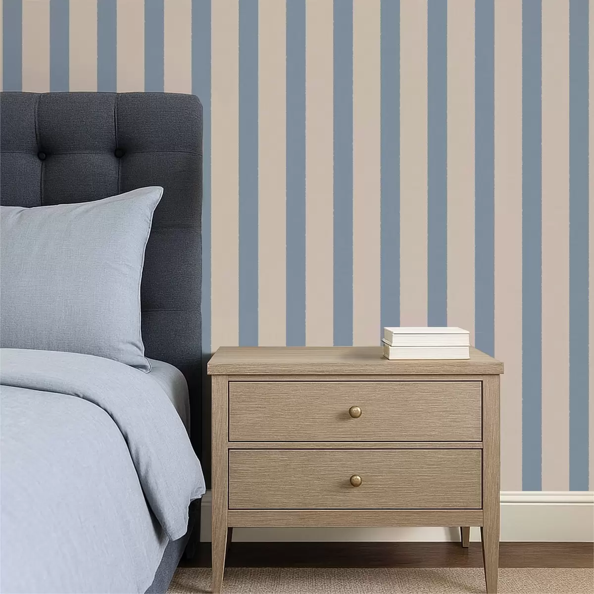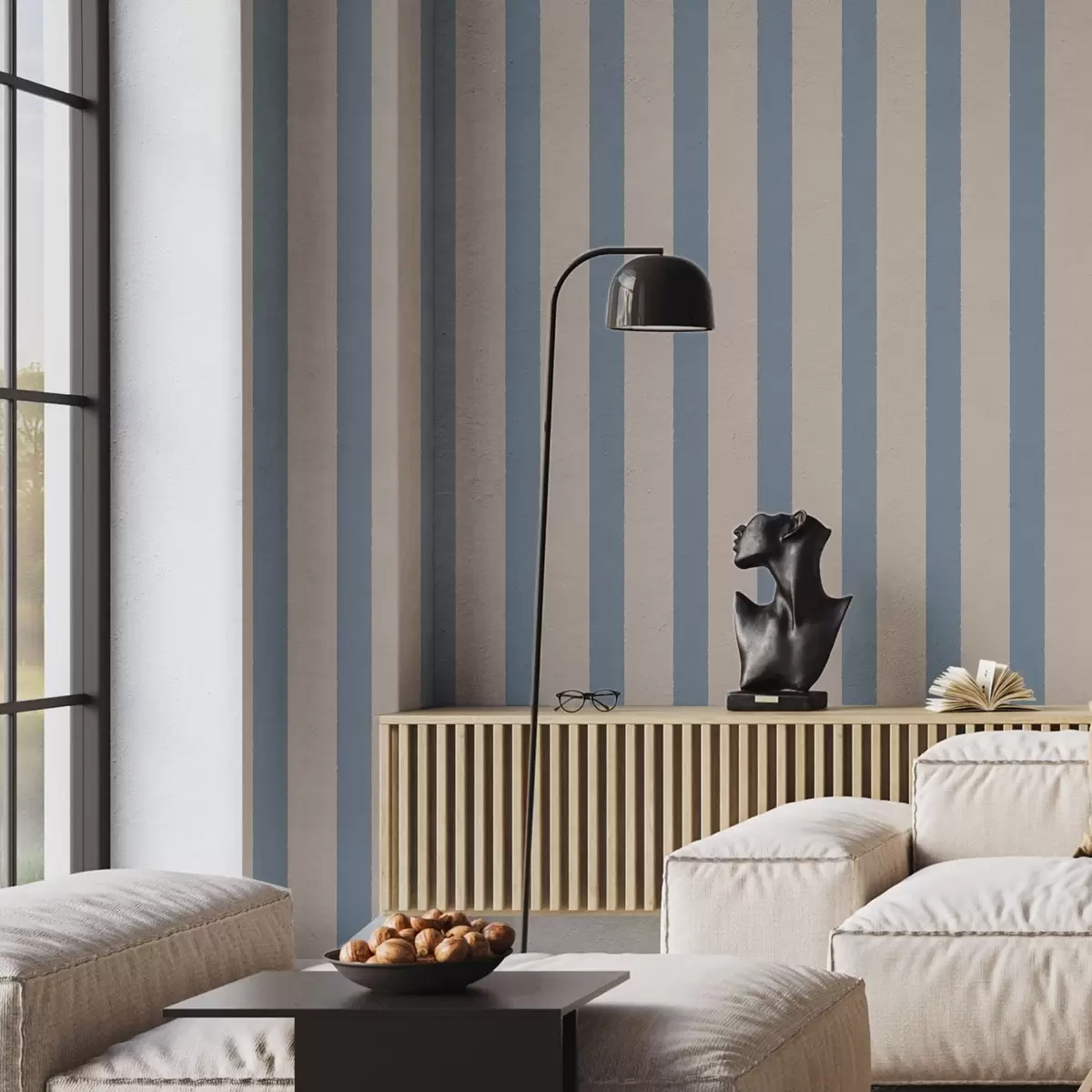 Behang Beige en lichtblauwe verticale strepen Nr. a01180v3