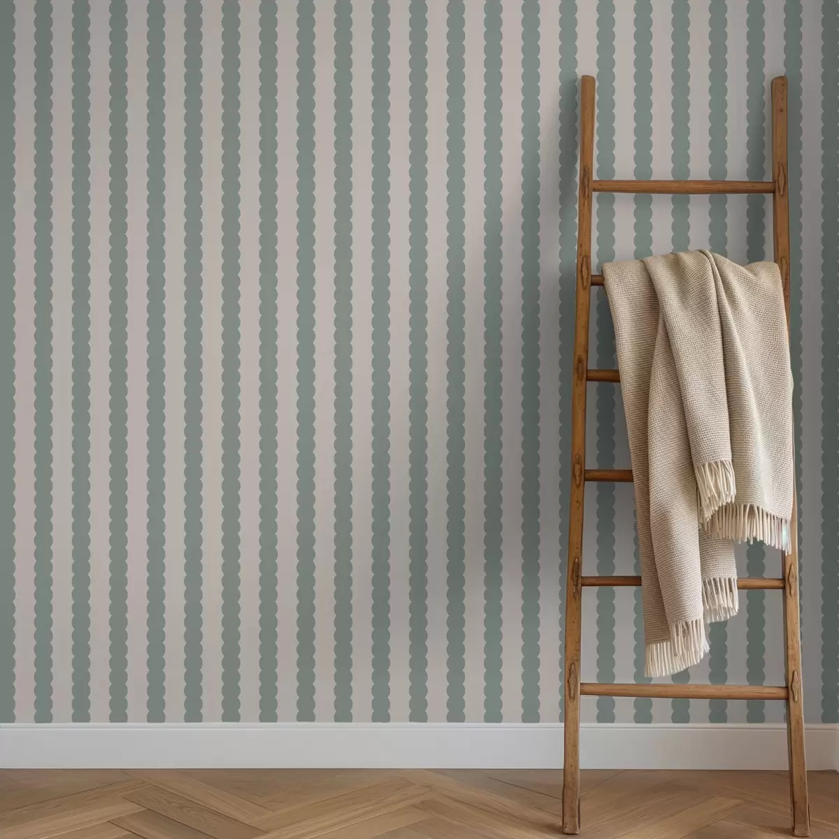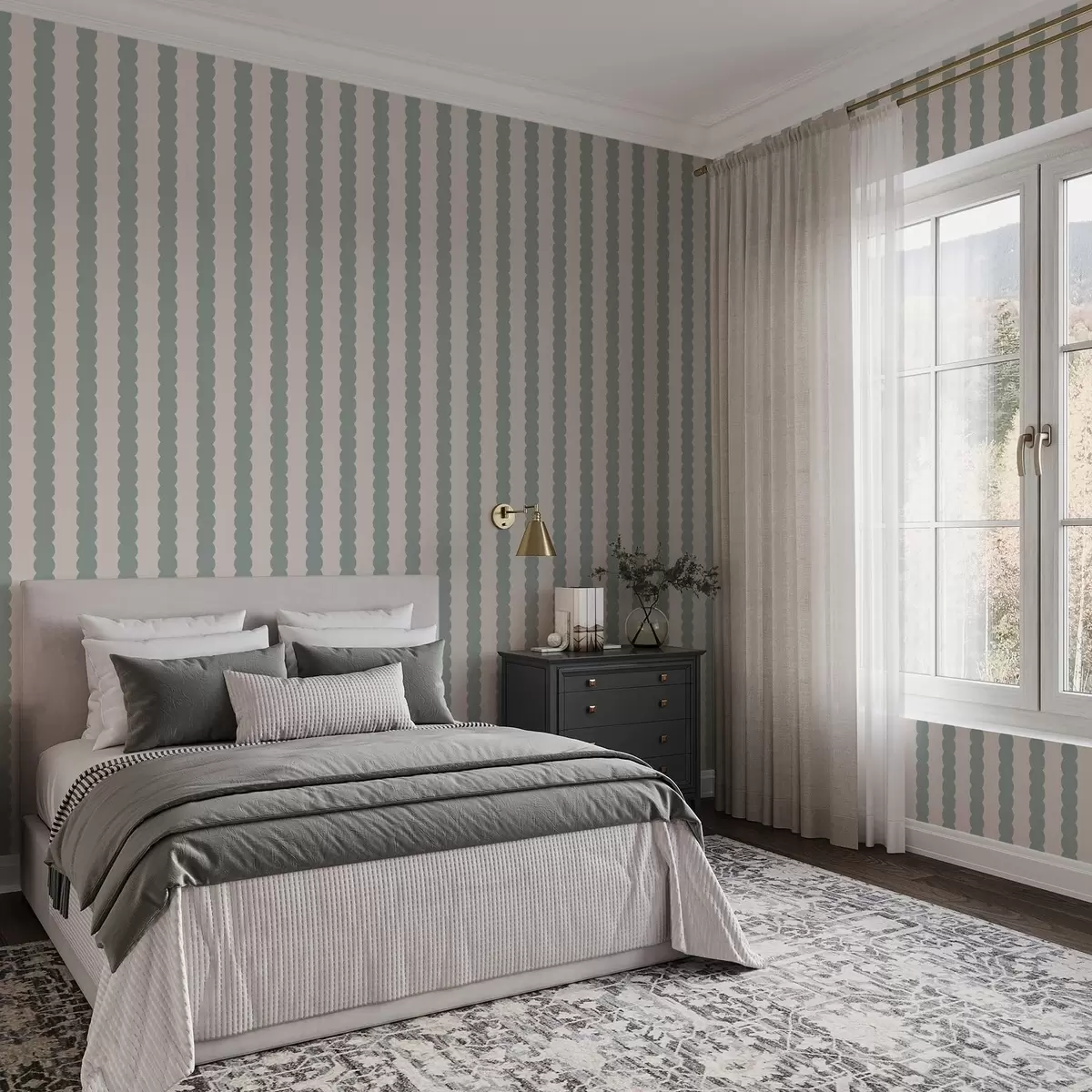 Behang Olijfgroene golvende strepen in minimalistische stijl Nr. a01182v1