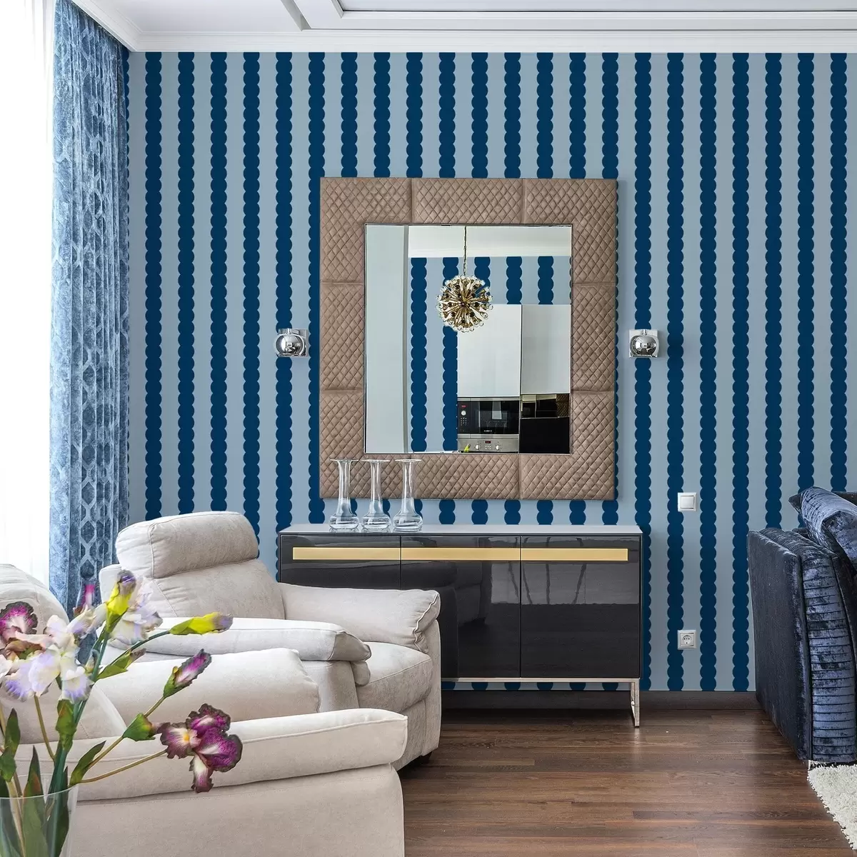 Behang Donkerblauwe golvende strepen in minimalistische stijl Nr. a01182v3