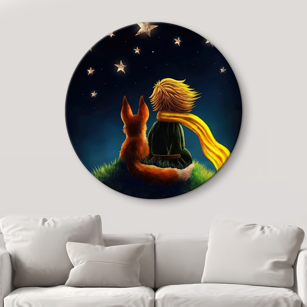 Ronde schilderijen Meisje in vintage-stijl met kikker
